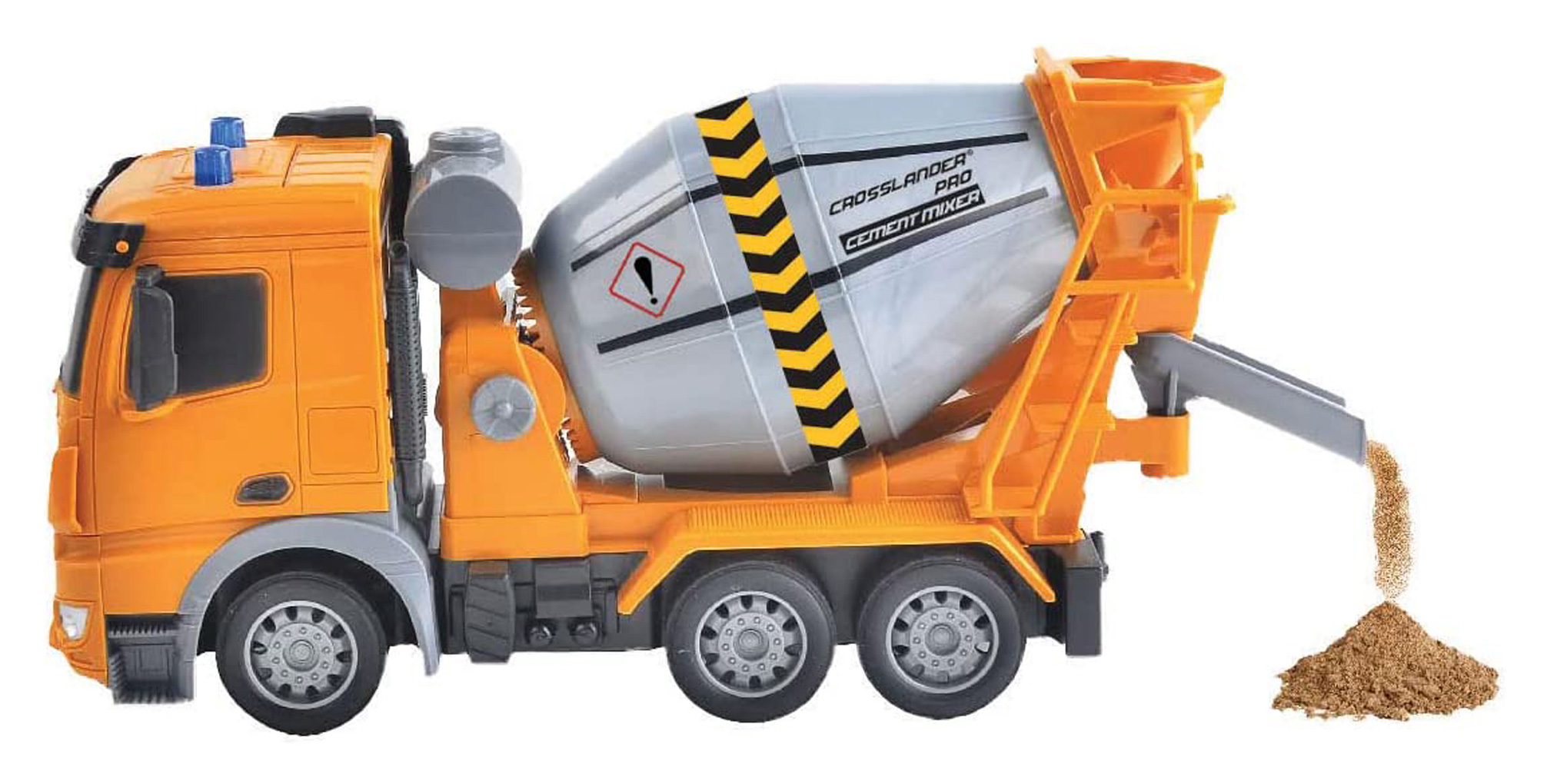 Představujeme vám multifunkční stavební auto s míchačkou na beton s dálkovým ovládáním Crosslander PRO® pro všechny malé stavitele. Tato skvělá hračka funguje jako skutečné stavební auto s mnoha dalšími vymoženostmi. S realistickými světelnými efekty a funkční míchačkou, která se otáčí o 360 stupňů, si děti budou připadat jako na opravdové stavbě. Do míchačky mohou nasypat a vysypat písek, stejně jako by to dělali s opravdovým betonem. Součástí je malá lopatka, kterou děti využijí při plnění. Dálkové ovládání na frekvenci 2,4 GHz s optimálním dosahem umožňuje dětem mít plnou kontrolu nad tímto úžasným autem bez jakýchkoli obtíží. Auto se pohybuje doleva, doprava, vpřed a vzad a pomocí ovládání dokáže otáčet míchačku doprava i doleva o 360 stupňů. A aby toho nebylo málo, v demo režimu auto ukáže všechny své triky! Ideální dárek pro všechny malé nadšence stavebních aut.