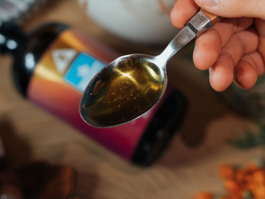 BEWIT MERKABA ULTIMATE ELIXIR je charakteristický svou olejovou texturou, nazlátlou barvou a jemně bylinkovou chutí. Případný sediment je přirozenou vlastností výrobku, jedná se o kousky řas a pupenů rostlin.