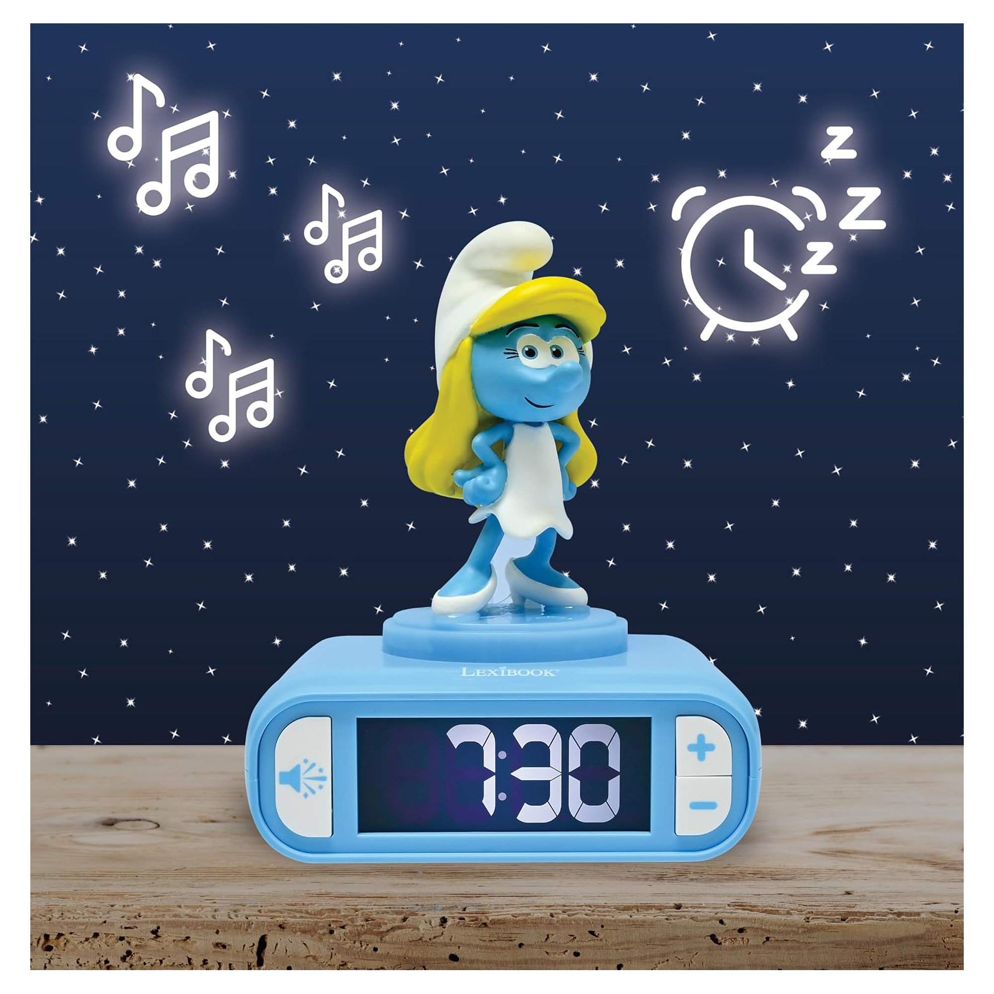 Budík s nočním 3D světlem Šmoulinka - Šmoulové