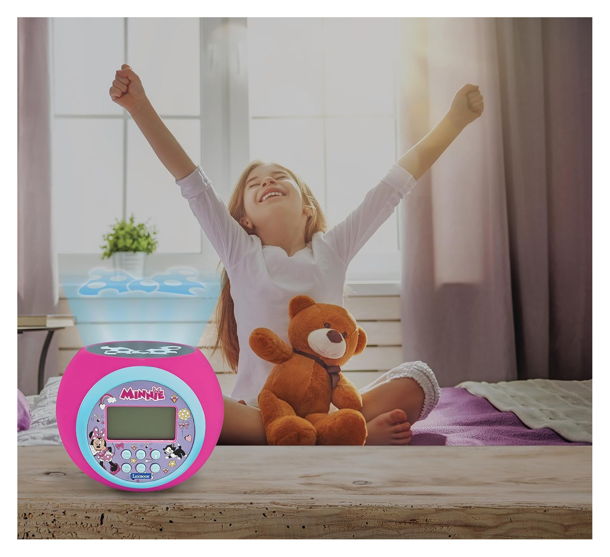 Budík s projektorem vykouzlí příjemnou atmosféru v dětském pokoji před tím, než se vaši nejmenší odeberou ke spánku. Roztomilý budík kulatého tvaru promítne na strop tematický obrázek a zároveň funguje jako noční světlo, které automaticky mění tři barvy – oranžovou, modrou a červenou. Jednoduchým stisknutím tlačítka se žárovkou aktivujete automatický časovač vypnutí světla. Podsvícený LCD displej zobrazuje čas ve 12 nebo 24hodinovém formátu, který snadno nastavíte díky uživatelsky přívětivým tlačítkům. Stejně lehce nastavíte budík (alarm), kdy se v horní části displeje zobrazí ikonka zvonku pro potvrzení. Ti, kteří si rádi dopřejí 5 minut spánku navíc, ocení funkci odložení budíku, kterou aktivujete jednoduchým stisknutím tlačítka se žárovkou.