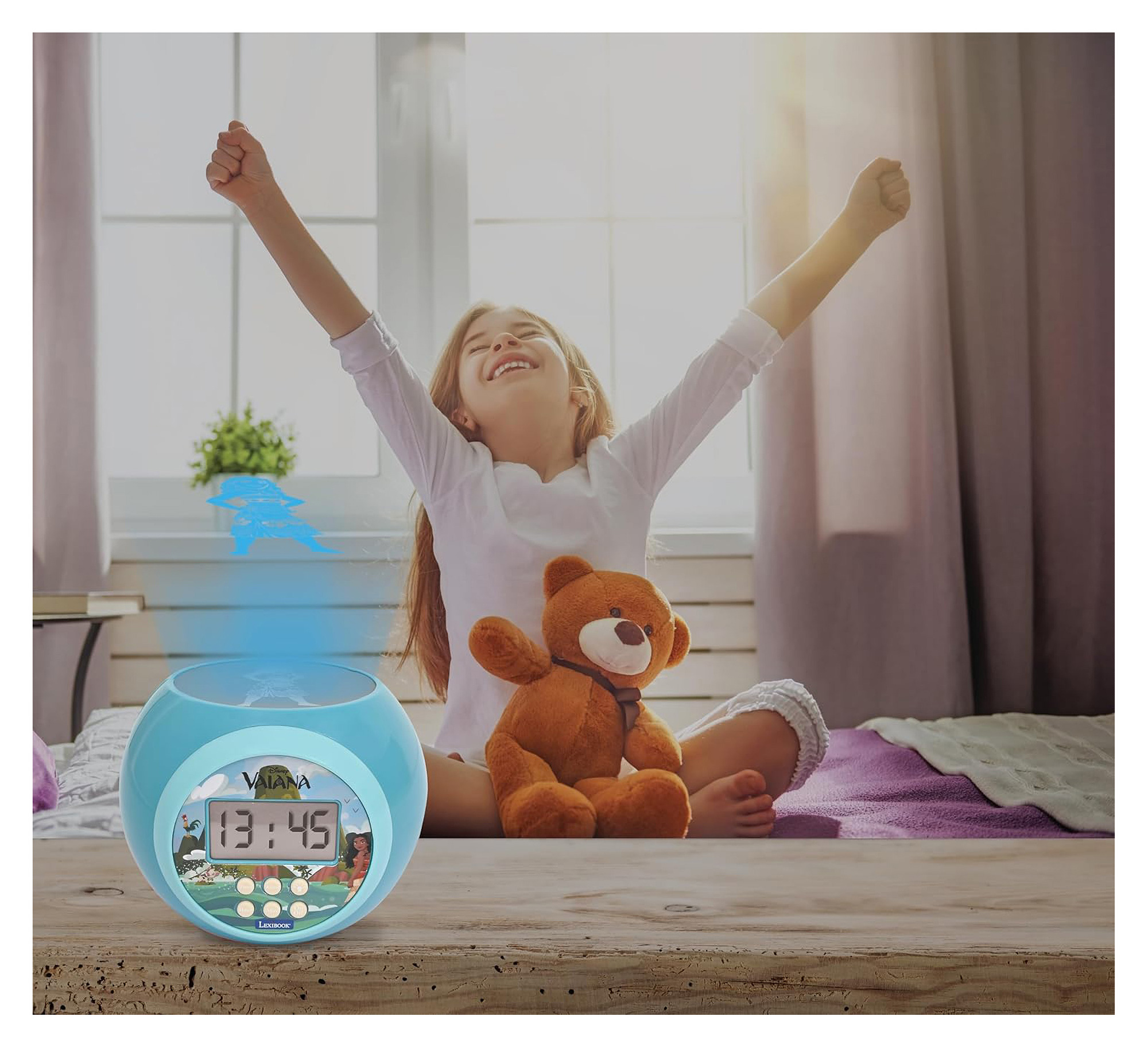 Budík s projektorem vykouzlí příjemnou atmosféru v dětském pokoji před tím, než se vaši nejmenší odeberou ke spánku. Roztomilý budík kulatého tvaru promítne na strop tematický obrázek a zároveň funguje jako noční světlo, které automaticky mění tři barvy – oranžovou, modrou a červenou. Jednoduchým stisknutím tlačítka se žárovkou aktivujete automatický časovač vypnutí světla. Podsvícený LCD displej zobrazuje čas ve 12 nebo 24hodinovém formátu, který snadno nastavíte díky uživatelsky přívětivým tlačítkům. Stejně lehce nastavíte budík (alarm), kdy se v horní části displeje zobrazí ikonka zvonku pro potvrzení. Ti, kteří si rádi dopřejí 5 minut spánku navíc, ocení funkci odložení budíku, kterou aktivujete jednoduchým stisknutím tlačítka se žárovkou.