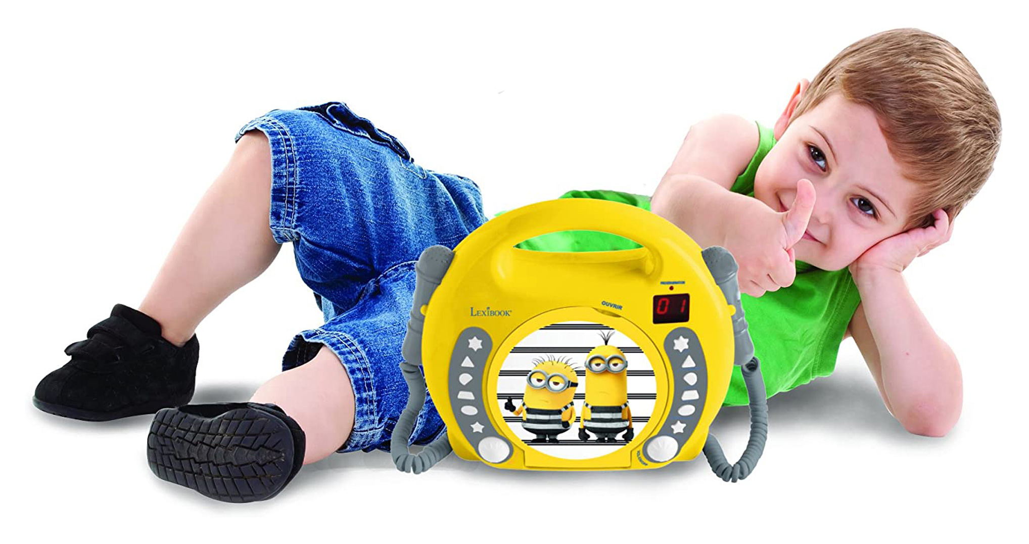 Přenosný CD přehrávač poskytne dětem skvělou zábavu na hodiny. Tento úžasný přístroj s CD přehrávačem na přední straně je vybaven dvěma dětskými mikrofony s nastavitelnou hlasitostí a několika dalšími funkcemi. Skvěle se hodí na karaoke nebo poslech hudby. Přehrávač je kompatibilní s disky CD/CD-R/CD-RW a umožňuje vytvořit si vlastní seznam skladeb nebo opakované přehrávání, vše viditelné na LED displeji. Děti ocení snadné ovládání pomocí intuitivních tlačítek. Připojte sluchátka (nejsou součástí balení) přes jack konektor a připadejte si jako skutečná hudební hvězda ve studiu! K dispozici je dokonce i praktická rukojeť pro snadné přenášení.