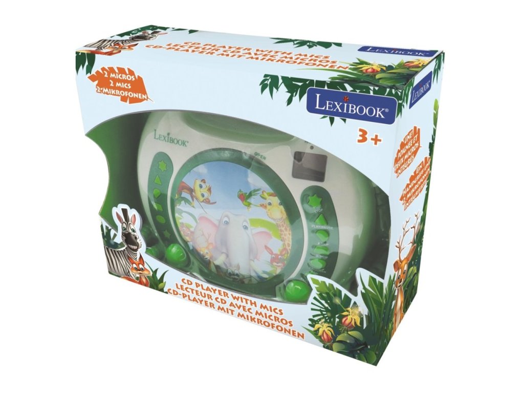 Přenosný CD přehrávač poskytne dětem skvělou zábavu na hodiny. Tento úžasný přístroj s CD přehrávačem na přední straně je vybaven dvěma dětskými mikrofony s nastavitelnou hlasitostí a několika dalšími funkcemi. Skvěle se hodí na karaoke nebo poslech hudby. Přehrávač je kompatibilní s disky CD/CD-R/CD-RW a umožňuje vytvořit si vlastní seznam skladeb nebo opakované přehrávání, vše viditelné na LED displeji. Děti ocení snadné ovládání pomocí intuitivních tlačítek. Připojte sluchátka (nejsou součástí balení) přes jack konektor a připadejte si jako skutečná hudební hvězda ve studiu! K dispozici je dokonce i praktická rukojeť pro snadné přenášení.