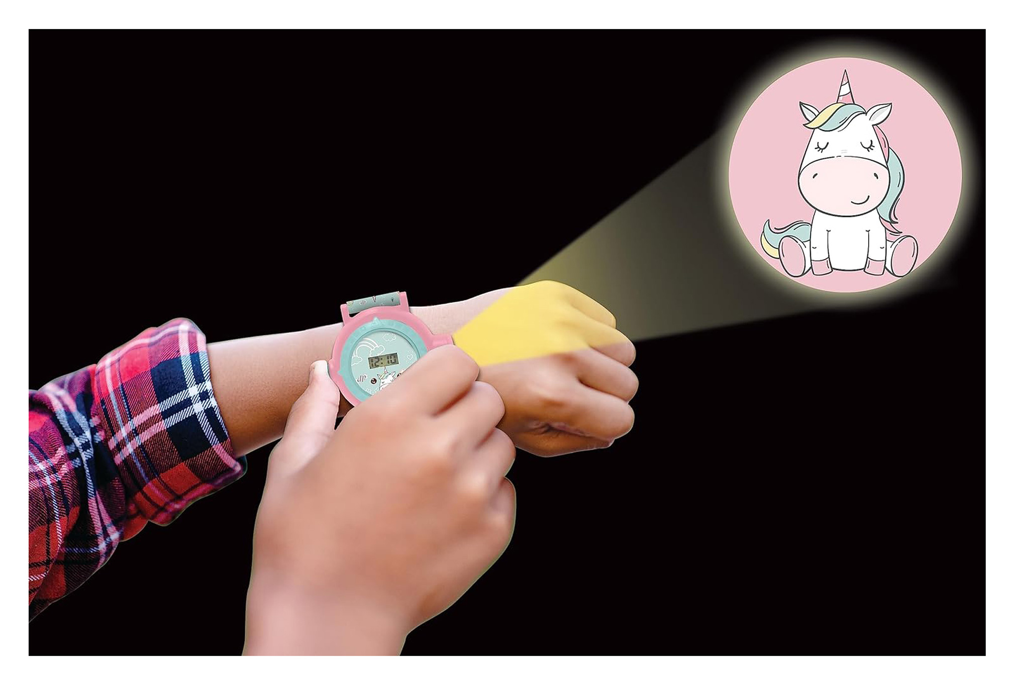 Představujeme digitální promítací hodinky – nezbytný doplněk pro všechny, kteří se rádi baví. Na digitální obrazovce jednoduše nastavíte čas i datum. Hodinky, ideální i pro menší zápěstí díky nastavitelnému řemínku, jsou nejen praktické, ale především velmi dobře vybavené. Díky funkci promítání, která je zabudovaná přímo v hodinkách, budou vaše ratolesti moci stylově předvádět své oblíbené postavičky, ať už půjdou kamkoli. Jednoduchým stisknutím bočního tlačítka spustíte promítání a pootočením obvodového kroužku okolo hodinek můžete vybírat ze 20 různých tematických obrázků. Obrázek zaostříte prostřednictvím kolečka na boční straně hodinek. Vaše děti nyní mohou svým kamarádům posílat kódované zprávy skrze promítané obrázky na stěny a vyzkoušet si tak tajnou komunikaci v symbolech!
