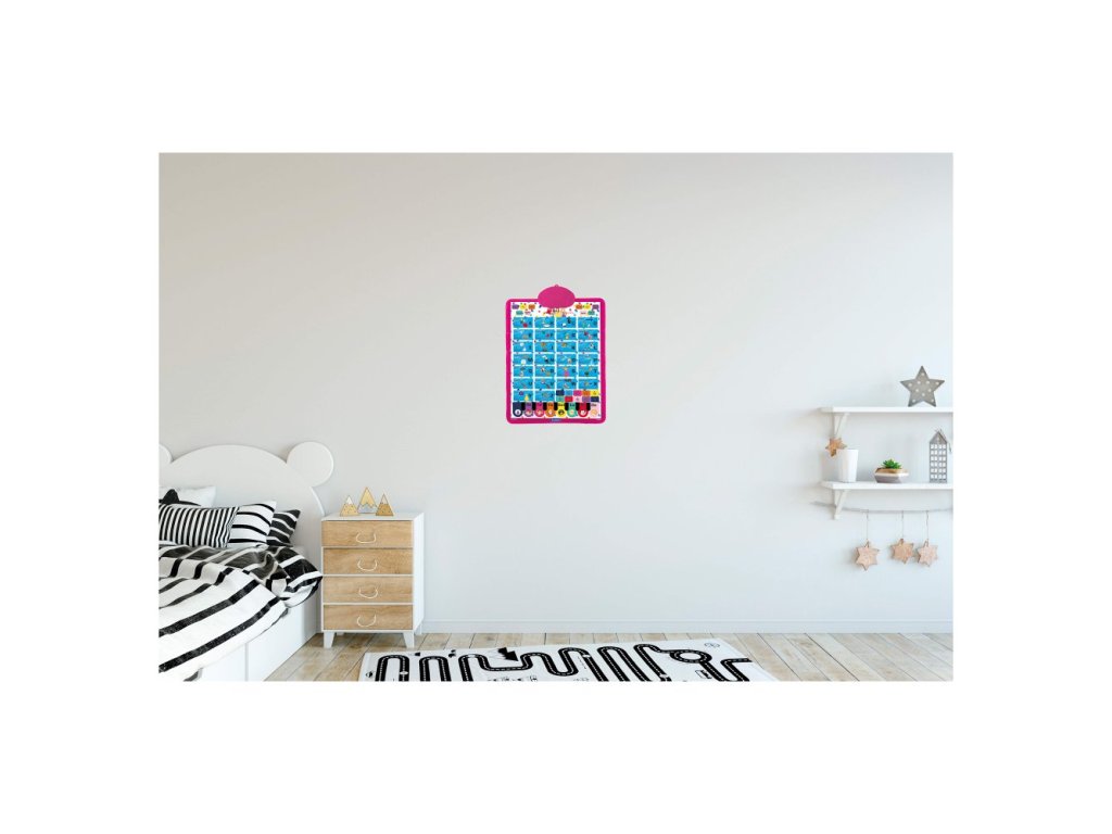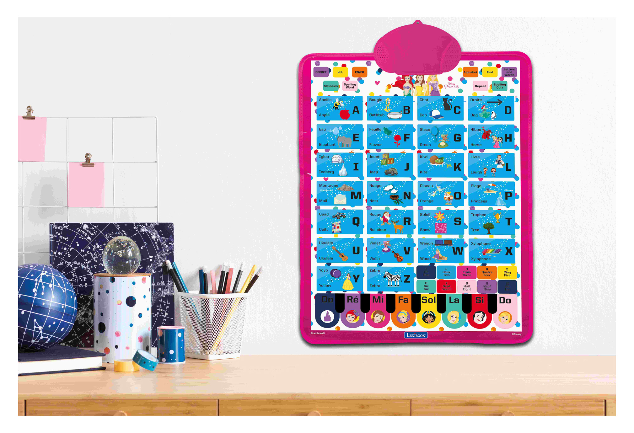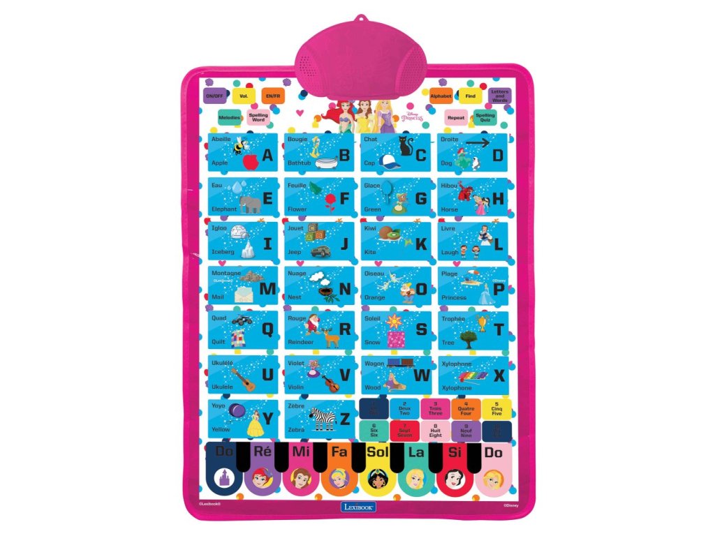 Zábavný anglicko-francouzský plakát, určený k zavěšení na zeď, je výbornou vzdělávací pomůckou pro děti od tří let. Díky několika herním režimům tento dvojjazyčný mluvící plakát děti seznamuje s čísly, abecedou, písmeny, slovní zásobou a hláskováním. Své nabyté znalosti mohou děti otestovat prostřednictvím zábavného interaktivního kvízu, ve kterém odpovídají na otázky a zadané úkoly zmáčknutím příslušného tlačítka. S vestavěným klavírem se děti mohou učit hudební noty nebo si jen tak pro radost zahrát některou z přednastavených melodií.