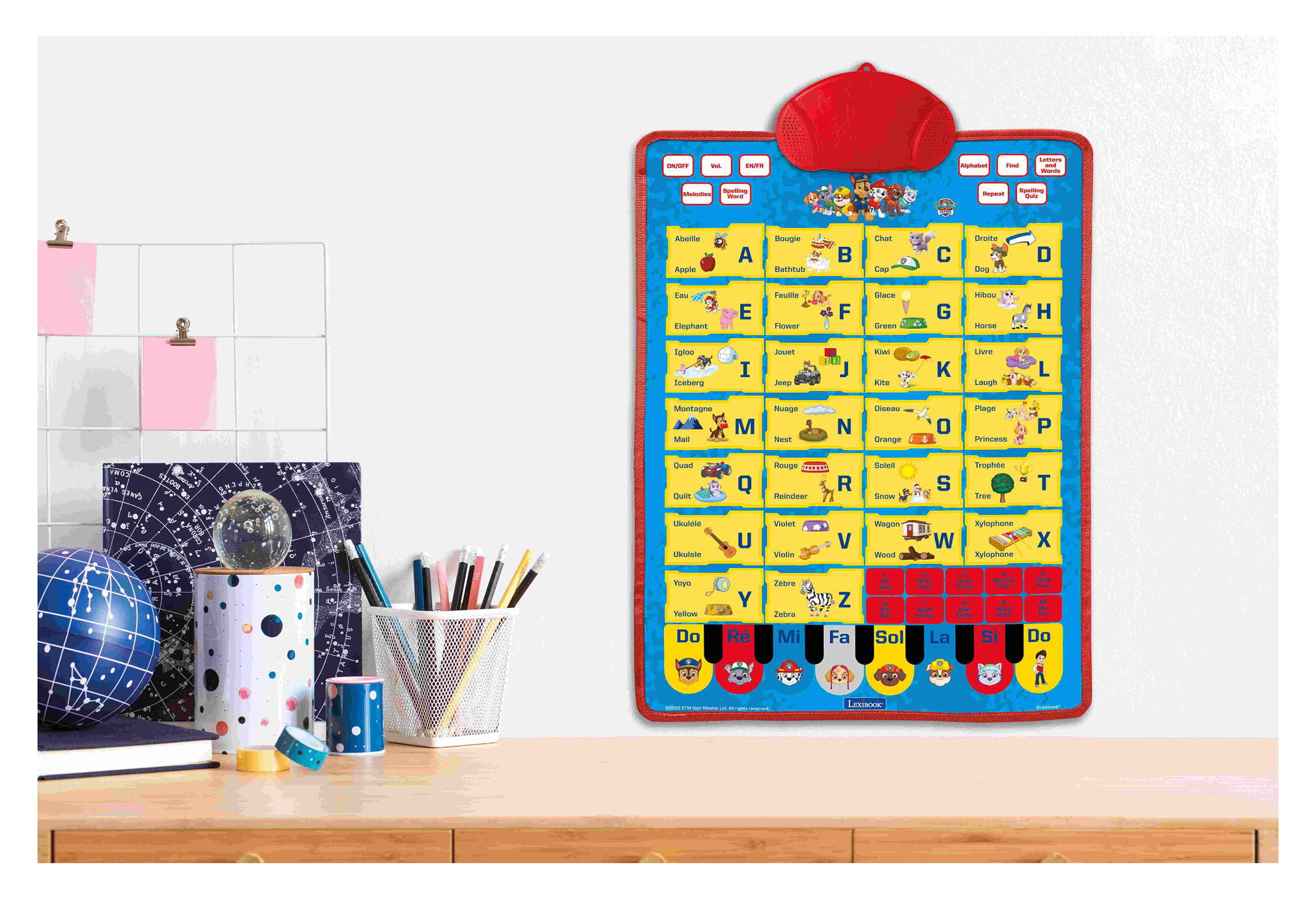 Zábavný anglicko-francouzský plakát, určený k zavěšení na zeď, je výbornou vzdělávací pomůckou pro děti od tří let. Díky několika herním režimům tento dvojjazyčný mluvící plakát děti seznamuje s čísly, abecedou, písmeny, slovní zásobou a hláskováním. Své nabyté znalosti mohou děti otestovat prostřednictvím zábavného interaktivního kvízu, ve kterém odpovídají na otázky a zadané úkoly zmáčknutím příslušného tlačítka. S vestavěným klavírem se děti mohou učit hudební noty nebo si jen tak pro radost zahrát některou z přednastavených melodií.