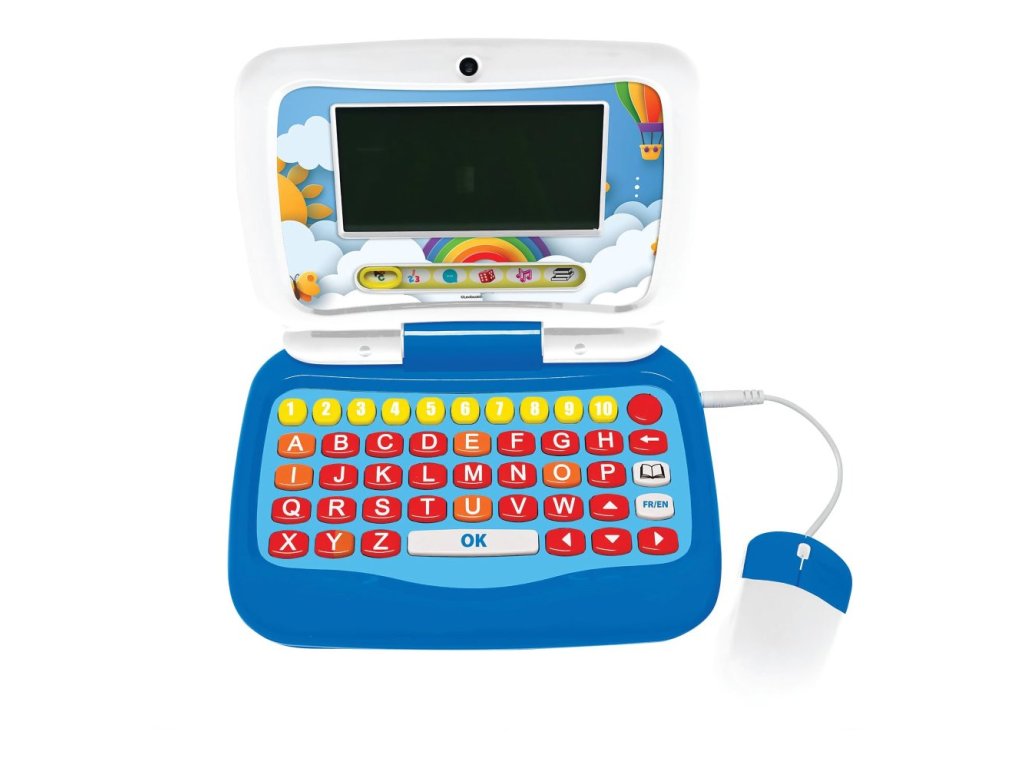 Objevte dvojjazyčný výukový počítač pro děti, který nabízí 40 aktivit (20 v angličtině a 20 ve francouzštině) pro zábavné a interaktivní učení. Díky sylabické metodě čtení (dělení slov na slabiky), vzdělávacím hrám, interaktivním příběhům, matematickým cvičením a hudebním aktivitám pomáhá rozvíjet jazykové a kognitivní dovednosti dítěte. Realistický design s funkční klávesnicí, myší s 20 cm kabelem a 5" (12,7 cm) obrazovkou přibližuje dětem práci na skutečném počítači.