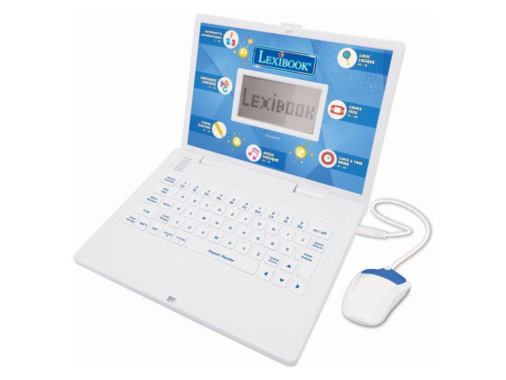 Pokud hledáte způsob, jak do herních aktivit zapojit prvek vzdělávání, pak je tento dětský notebook ideální volbou. Podoba s opravdovým notebookem, reálná myš a LCD displej o velikosti 5,1 x 9,7 cm je lákadlem pro všechny malé nadšence, kteří se chtějí přiblížit dospěláckému světu. 124 aktivit z různých oblastí, z nichž polovina je v angličtině a druhá polovina ve francouzštině je určeno k zábavnému učení, trénování paměti, rychlosti a zlepšování všeobecných dovedností. Na výběr je matematika, kde se děti naučí nejen čísla, ale také základní početní operace. Výuka dvou jazyků je seznámí s písmeny, slovy a výslovností a dvojjazyčná klávesnice jim umožní vyzkoušet si psaní. Hraní paměťových her jim pomůže potrénovat logiku a opomenuta není ani hudba, kde děti určují správné znění melodií. V notebooku najdete také hry a poznávání času.