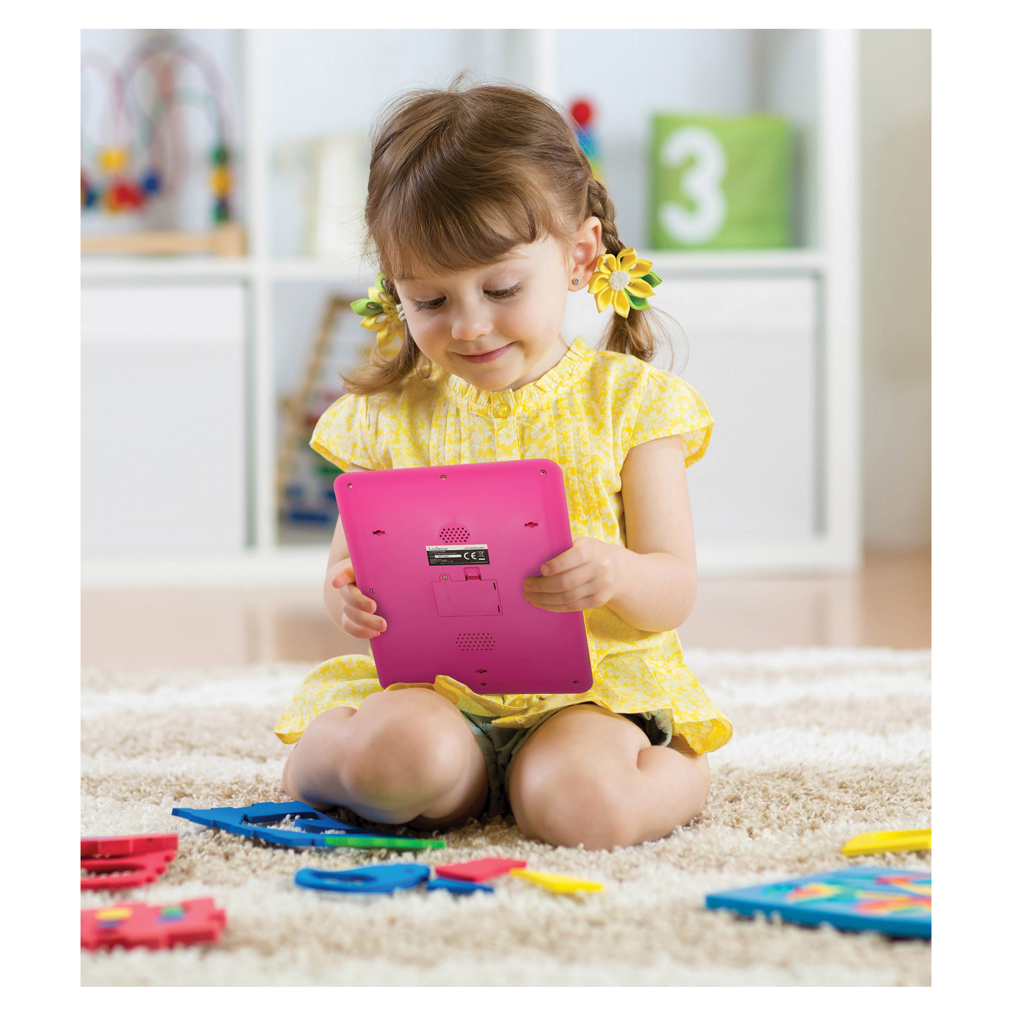 Mluvící, francouzsko-anglický vzdělávací tablet, je ideální pro výuku čísel, abecedy a základní slovní zásoby zábavnou formou! Jeho interaktivní dotykový displej s tlačítky umožňuje snadné přehrání slov, písmen a čísel jediným stiskem. Umí také přehrávat melodie. Součástí tabletu je kvíz, který dítě obohacuje o interaktivní systém otázek a odpovědí, na které odpoví snadným stisknutím příslušného tlačítka. Tablet je lehký, snadno se drží a je pohodlné vzít jej kamkoliv s sebou.