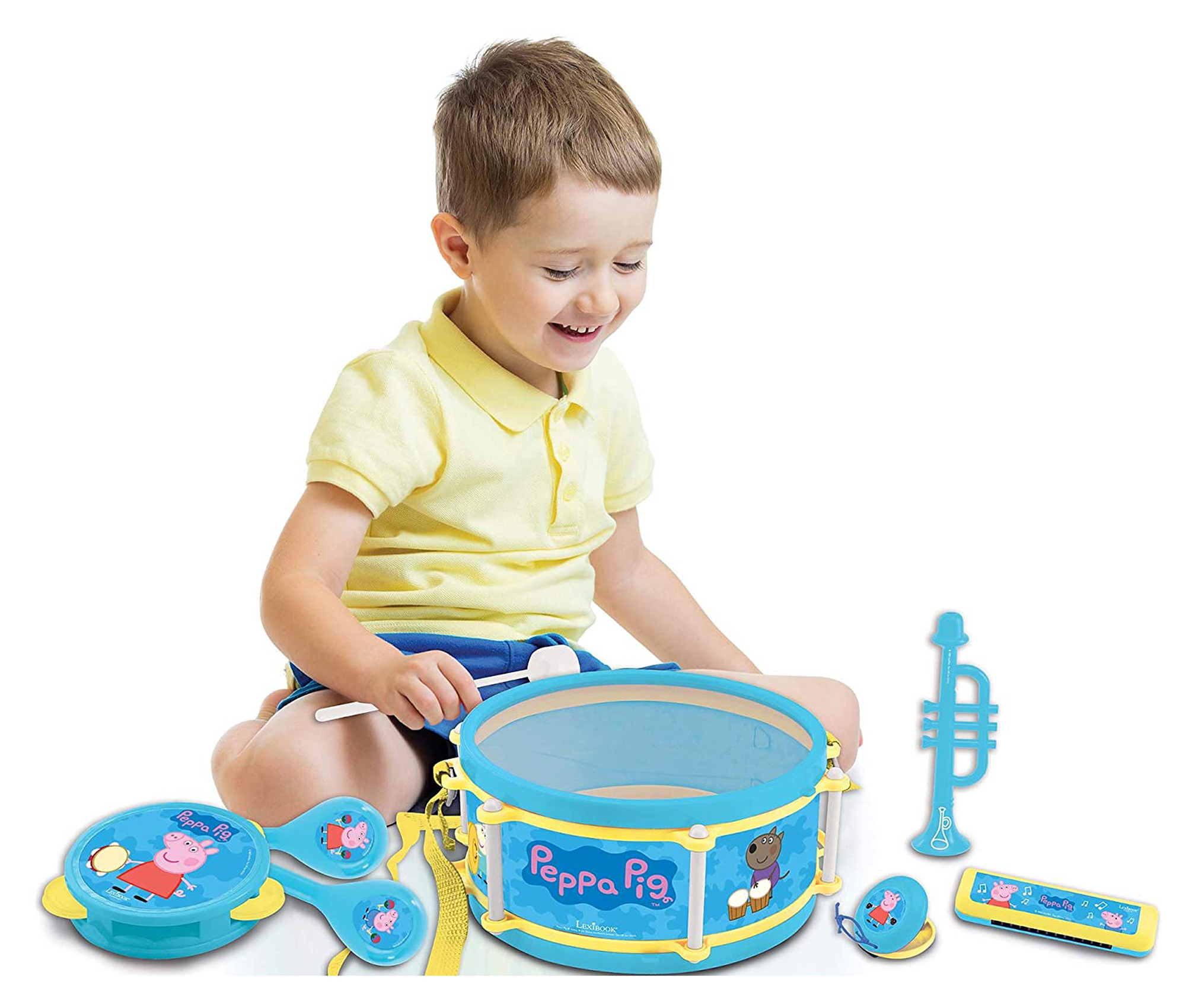 Tato sedmidílná hudební sada je skvělým začátkem pro ty nejmenší při seznamování se s rytmy a hudbou. Sada obsahuje buben, kastaněty, harmoniku, flétnu, trubku, pár maracasů (rumba koulí), malou tamburínu a dvě paličky. Všechny nástroje lze bezpečně uložit do velkého bubnu s víkem pro snadné skladování a přepravu, což oceníte při cestování nebo přenášení. Děti si užijí spoustu legrace, která zároveň přispívá k rozvoji koordinace pohybů a procvičování sluchového vnímání.