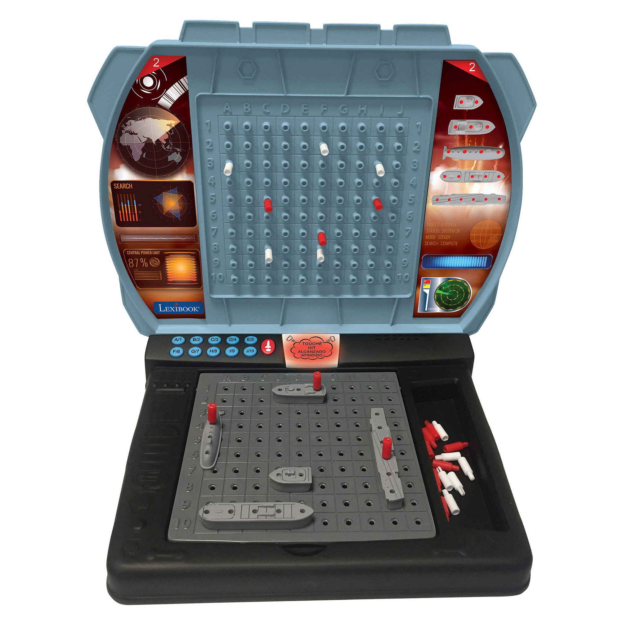 Hrávali jste jako malí strategickou hru lodě? Představte ji vašim dětem v moderní podobě! Mluvící elektronická hra s námořními bitvami pro dva hráče zabaví děti na dlouhé chvíle. Bojovat můžete proti sobě nebo proti počítačovému soupeři. Začít je snadné – jednoduše rozestavte svých pět lodí na mřížce oceánu, zadejte souřadnice ke každé lodi a pak už jen střílejte. Zvolte písmeno a číslo cílové souřadnice a stisknete tlačítko "PAL". Snažte se strategicky potopit soupeřovu flotilu dříve, než on zničí tu vaši. Červenými a bílými kolíčky si značte úspěšné a neúspěšné zásahy (na horní mřížce značte vaše zásahy, na dolní soupeřovy). Vyberte si ze dvou herních režimů – snadný režim nebo obtížný režim, ve kterém počítač neurčuje typ zasažené lodi. Součástí hry jsou realistické bojové zvuky a blikající světla po potopení nebo zasažení plavidla. Tak vzhůru do boje!