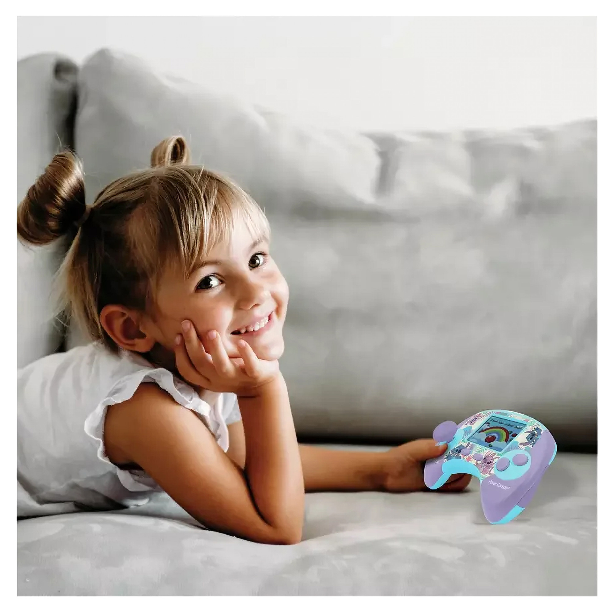 Francouzsko-anglická vzdělávací konzole nabízí 100 aktivit, 50 v každém jazyce, z 5 různých kategorií: jazyk, matematika, všeobecné znalosti, logika a hry. Děti tak mohou zábavnou formou prostřednictvím poutavých aktivit procvičovat slovní zásobu, rozvíjet logiku a analytické schopnosti, numerické dovednosti a mnohem více – všechno v jednom úžasném zařízení. Díky kompaktní velikosti je konzole snadno přenosná a umožňuje dětem hrát kdekoli a kdykoliv. Ergonomický design zajišťuje pohodlné držení, zatímco barevný LCD displej o úhlopříčce 2,8" (6 x 4,6 cm) nabízí vynikající vizuální zážitek.