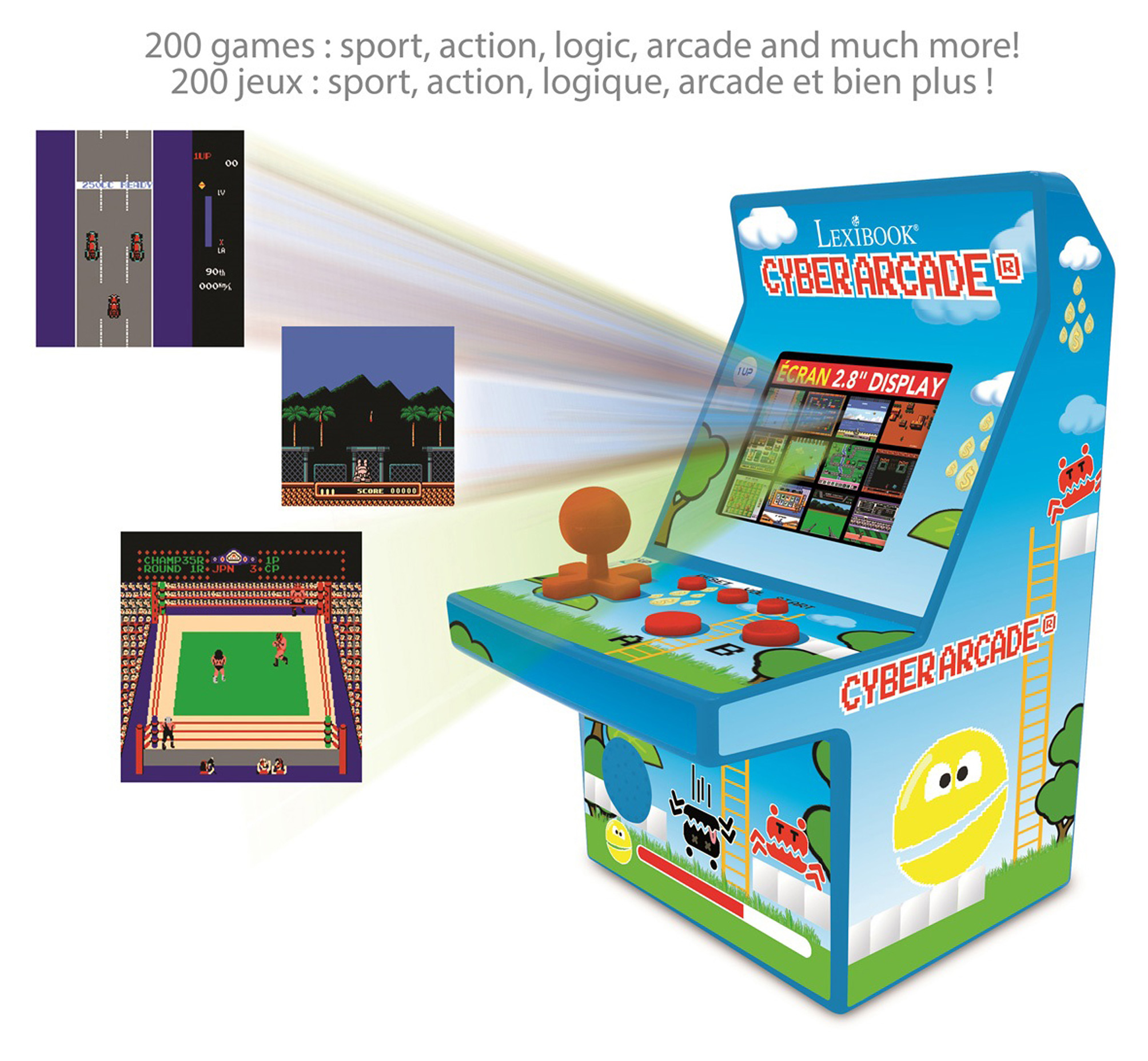 Malá herní konzole v retro stylu se všemi klasickými hrami na jednom místě. Obsahuje 200 přednastavených videoher. Zahrát si můžete sportovní, akční, logické, dobrodružné hry a mnoho dalších, které se budou hodit ve chvílích nudy. Lovte příšery, vyhýbejte se nástrahám, střílejte góly a vyhrávejte závody – hodiny zábavy pro každého! Díky malé velikosti si děti mohou herní konzoli snadno vzít kamkoliv s sebou. Navíc ji oceníte jako skvělý doplněk při cestování nebo dlouhém čekání, kdy potřebujete děti zabavit a udržet v klidu. Konzole má barevný 2,8" (7,1 cm) LCD displej, vestavěný reproduktor s nastavitelnou úrovní hlasitosti a joystick.