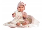 Miminka vydávající zvuk po zatlačení na hrudník s měkkým tělem a kloubovým uchycením končetin