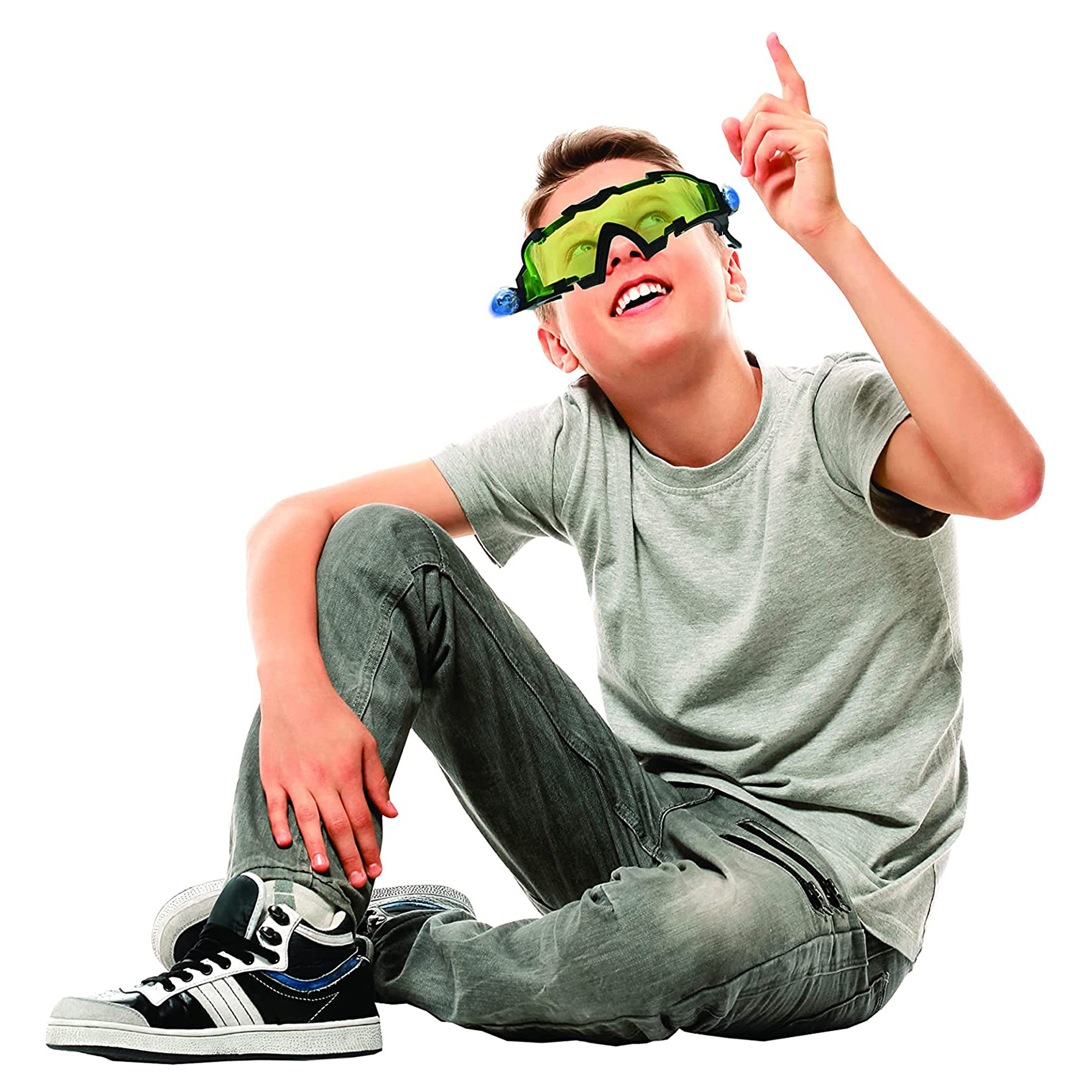Oblíbily si vaše děti hraní na špióny a tajné agenty? Posuňte jejich hru na jinou úroveň a pořiďte jim brýle pro noční vidění. Se zeleně zabarvenými skly a praktickými vysouvacími LED světly umístěnými po stranách jim neunikne žádný detail. Boční světla snadno zapnete zmáčknutím tlačítka na zadní straně brýlí a pro jejich vysunutí stačí stisknout červená posuvná tlačítka po stranách. Brýle jsou vybaveny nastavitelnými elastickými popruhy, které zajistí, že brýle zůstanou na místě i během nejnáročnějších tajných misí. Tak hurá do toho!