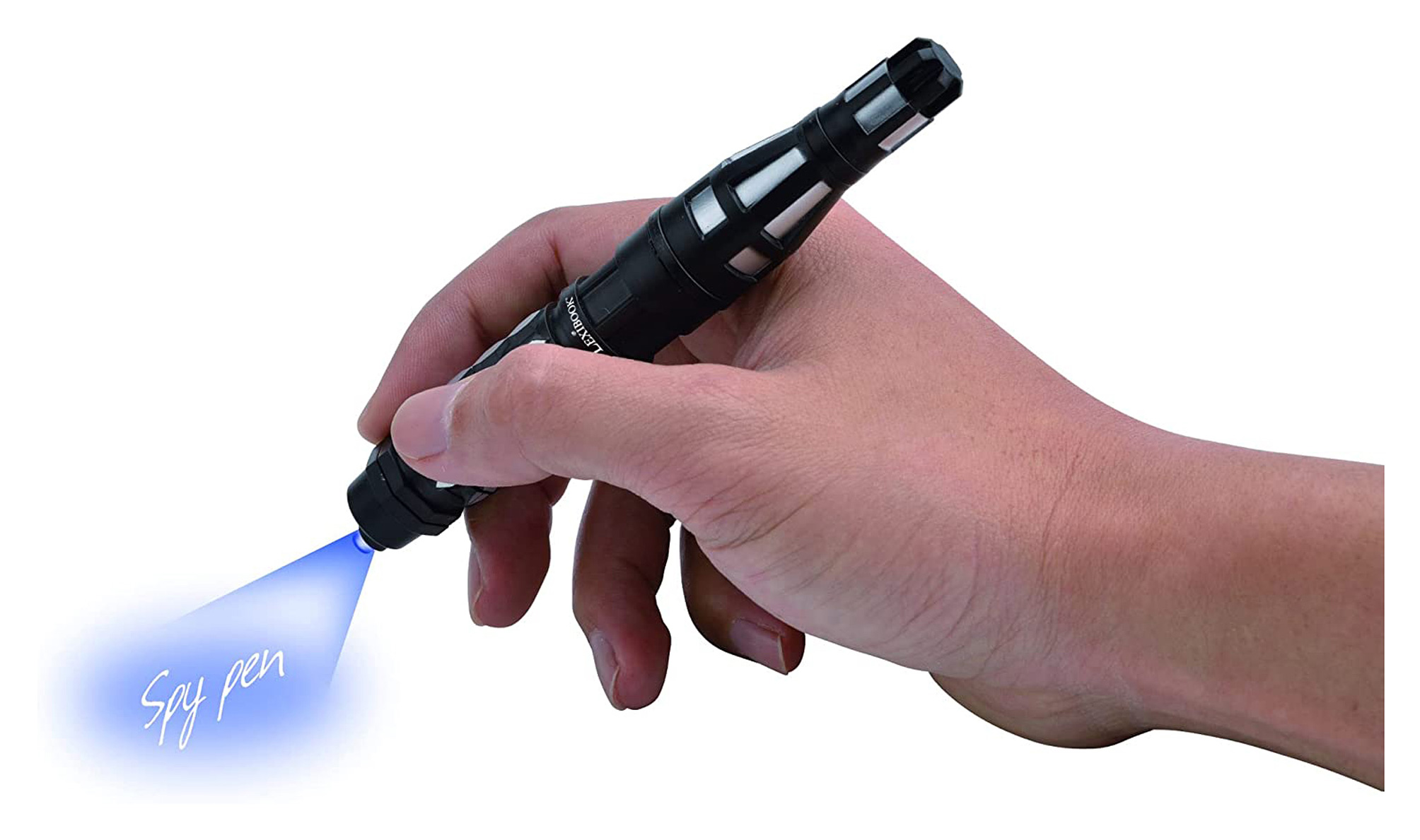 Představujeme špionážní pero, které odhalí i ty nejskrytější zprávy. S jeho neviditelným inkoustem mohou děti psát tajné zprávy, které zůstanou očím ostatních skryty. To je dokonalý způsob, jak nezanechat jako správný agent žádné stopy. A když přijde okamžik odhalení, dekódovací UV světlo umožní skrytý obsah zobrazit pouhým stisknutím spínače. A to není vše – pero ukrývá tajnou přihrádku pro uložení přísně tajných vzkazů nebo dalších drobností. S tímto špionážním perem s neviditelným inkoustem budou vaše děti připraveny na dobrodružství plné tajemství!