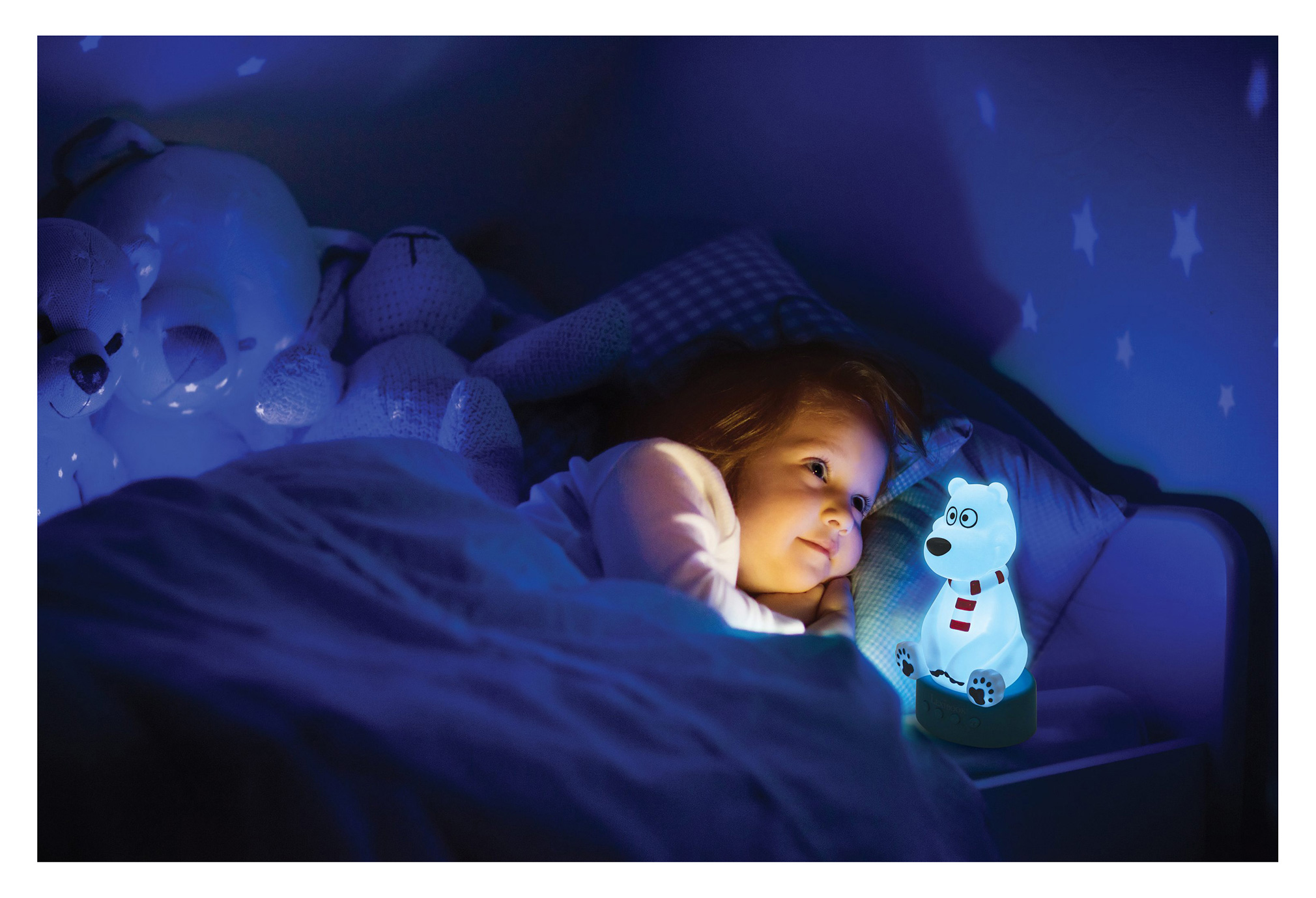 Představujeme vám dokonalého společníka před spaním, 3D polárního medvídka s nočním světlem. Tento rozkošný lední medvěd nabízí 30 příběhů v angličtině v celkové délce téměř 3 hodin nádherného vzdělávacího obsahu se 3 zábavnými melodiemi. Děti si zamilují poslech fantastických příběhů, bajek a pohádek, které je ohromí, pobaví a poučí, zatímco se budou pomalu odebírat ke spánku. A nejen to, 3D postavička zároveň slouží jako malé noční osvětlení. Energeticky úsporné LED světlo, které jemně střídá barvy, vytváří příjemnou a uklidňující atmosféru před spaním. Medvídek vypravěč je také skvělým vzdělávacím nástrojem, který stimuluje soustředění, obohacuje slovní zásobu a rozvíjí jazyk. Díky vestavěné dobíjecí baterii a velikosti 17 cm si jej děti mohou vzít kamkoliv s sebou.