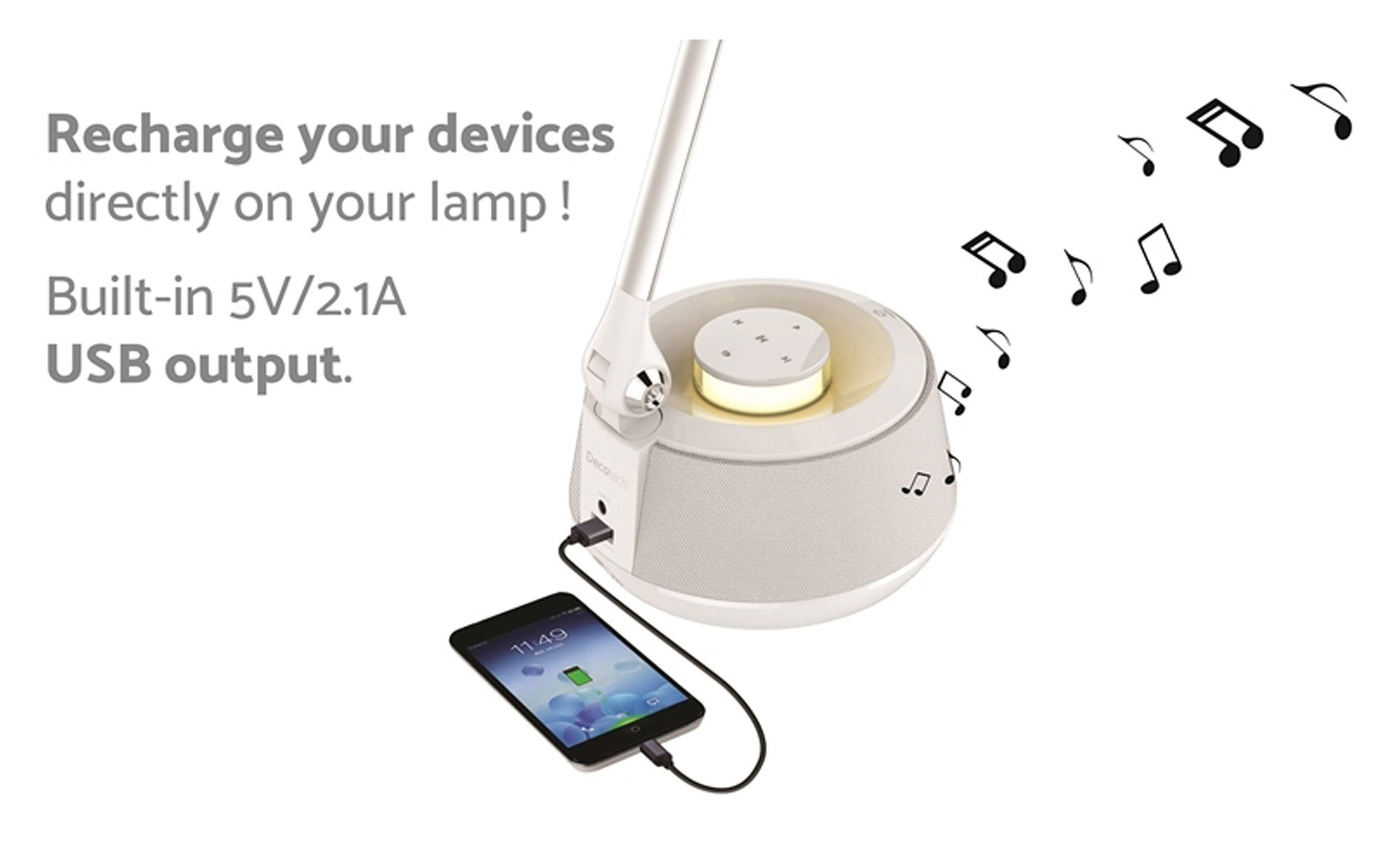 Hledáte osvětlení, které nejenom rozjasní prostor, ale také přidá elegantní a funkční design? Naše LED lampa s vestavěným Bluetooth® reproduktorem o výkonu 10 hudebních wattů je tím pravým řešením. S technologií LED poskytuje příjemné a energeticky úsporné osvětlení s třemi úrovněmi jasu, které lze přizpůsobit podle vašich potřeb. Navíc můžete snadno připojit hudební zařízení pomocí 3,5mm audio jacku (kabel je součástí balení) nebo bezdrátově díky Bluetooth®. Tato lampa o rozměrech 42 x 12,9 x 14 cm má elegantní design s kovovou povrchovou úpravou, rameno a svítící panel lampy jsou skládací a nastavitelné. Navíc na lampě najdete praktický nabíjecí USB port pro mobilní telefony a další zařízení. Ovládání hlasitosti, hudby a jasu je zabudované přímo na lampě.