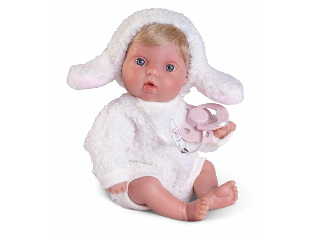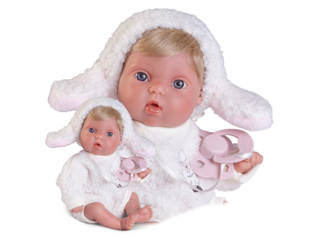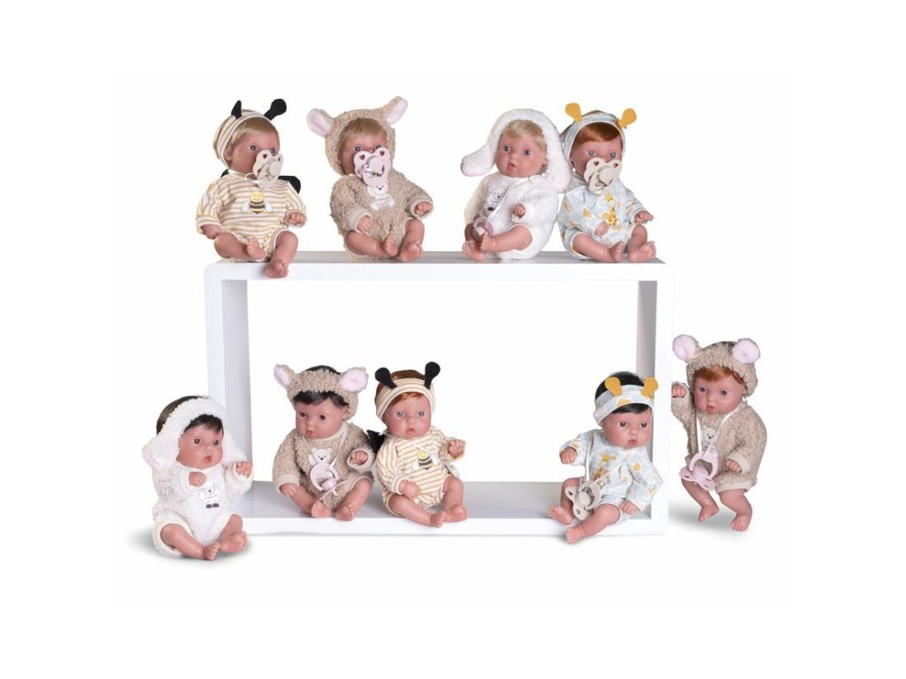Ručně vyrobená realistická španělská panenka - miminko new born s celovinylovým tělem a realistickým vyobrazením různých miminkovských faldíků a detailů včetně pohlaví. Panenka je vyrobená ze speciálního měkčeného vinylu, velmi příjemného na dotek. Oblečení některých panenek bylo vyrobeno z organické bavlny, která zaručuje výrobu z ručně sbírané, ekologicky bez chemického ošetření pěstované bavlny. Firma Antonio Juan klade velký důraz na ekologii a proto jako první využívá v tomto odvětví zmíněnou bavlnu. Velikost 21 cm. Doporučený věk od 2 let.