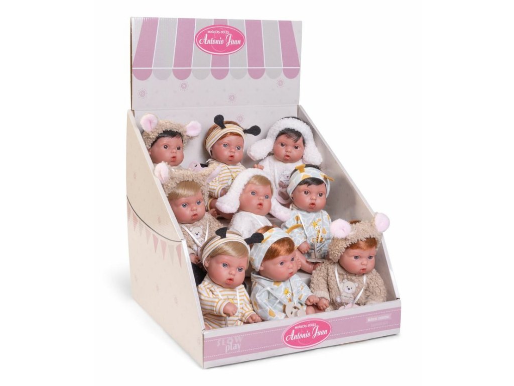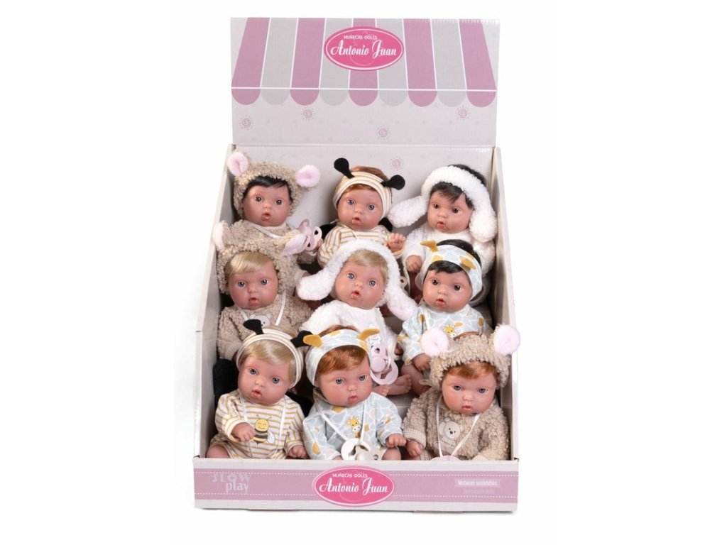 Antonio Juan je značka ručně vyráběných španělských panenek z provincie Alicante. Firma byla založena v roce 1958 ve městě Onil jako skromný rodinný podnik, ve kterém se spojily tři generace majitelů hraček. Od té doby stále funguje a získala si díky svému designu a kvalitě místo na světových trzích. Firma Antonio Juan klade velký důraz na ekologii a proto jako první využívá v tomto odvětví organickou bavlnu, která zaručuje výrobu z ručně sbírané, ekologicky bez chemického ošetření pěstované bavlny. Oblečky panenek jsou tedy nejen krásné, ale i velmi příjemné na dotek. V nabídce nalezneme realistické zvukové či bezvukové panenky s měkkým látkovým nebo celovinylovým tělem mnoha velikostí a úsměvů. Samozřejmě, že nechybí ani miminka propracovaná do každého detailu včetně roztomilých miminkovských faldíků a pohlaví. I zde si můžeme vybrat měkké látkové tělo nebo speciální měkčený vinyl, který je velmi příjemný na dotek. I miminka mají mnoho velikostí, úsměvů, ale i zachmuřelých výrazů anebo sladce spinkají. Některé pláčou nebo se smějí, či jen tak roztomile žvatlají. Některé pohybové funkce panenek zajištují, že vypadají doslova jako živé. V nabídce ale nalezneme i dvě řady ručně malovaných Rebornů, kde je každá panenka svým unikátem a má svůj rodný list – doklad o původu. Speciálně sběratelská řada nabízí panenky, které jsou opravdu určené až dětem od 14 let, aby je svým zacházením při hraní nepoškodily. Firma nezapomíná ale ani na nejmenší děti, pro které vyrábí speciální panenky vhodné od 18 měsíců.