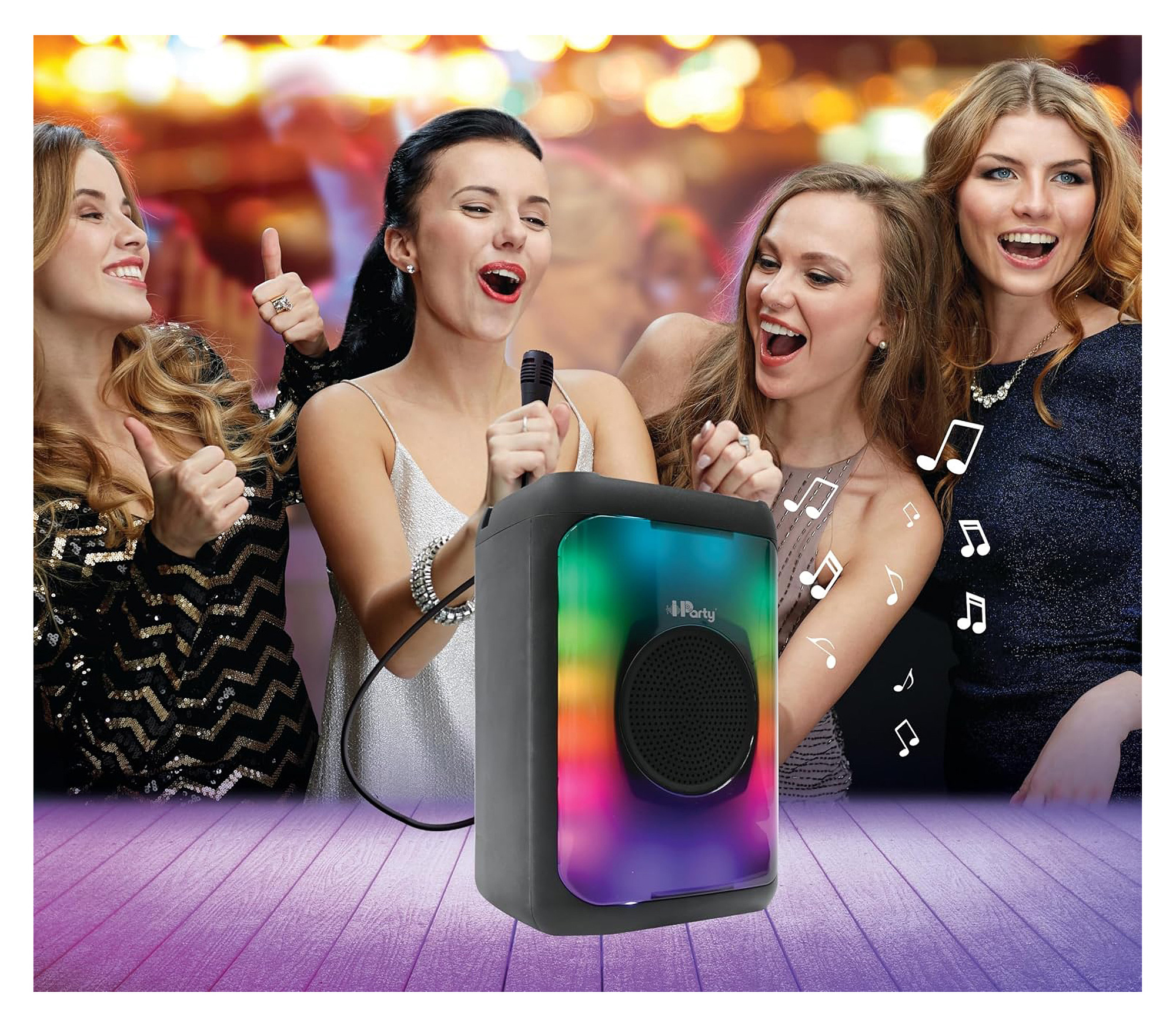 Reproduktor s vícebarevnými světelnými efekty a mikrofonem je nezbytným doplňkem pro každou karaoke párty. Bezproblémově funguje bezdrátově s jakýmkoli zařízením podporujícím Bluetooth 5.0. Kromě toho sloty pro USB a micro-SD/TF karty (karty ani USB disk nejsou součástí balení) spolu s 3,5mm pomocným vstupem vám umožní bez námahy připojit jakékoli audio zařízení a vychutnat si hudbu podle vlastního výběru. Díky dobíjecí baterii je možné reproduktor přenášet a užívat si skvělou hudební atmosféru kdekoliv. Funkce TWS umožňuje synchronizaci dvou reproduktorů (druhý reproduktor není součástí balení) a vychutnat si dokonalý stereo zvuk. Budete mít dojem, že hudba zní "naživo" přímo u vás doma.