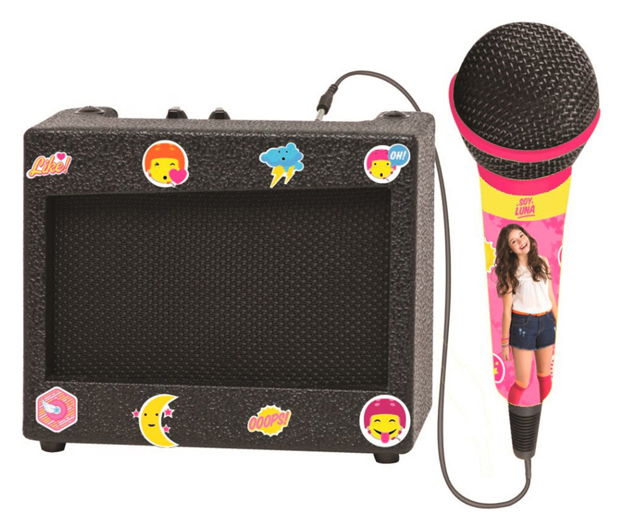 Úžasná přenosná karaoke sada v retro stylu pro všechny ty, kteří rádi zpívají. Sada je vybavena výkonným reproduktorem o 5 hudebních wattech a mikrofonem, který snadno zapojíte do konektoru. Stačí nahrát oblíbené skladby do vlastního audio/video přehrávače, tabletu či mobilu, zapojit jej do vstupu pro přehrávač médií na zesilovači a show může začít (kabel není součástí balení). Perfektní zařízení na karaoke večírky, ideální na dětské narozeninové oslavy a pro oživení volného času dětí. Díky své malé velikosti se snadno přenáší a vytvoří zábavnou hudební atmosféru kdekoliv.