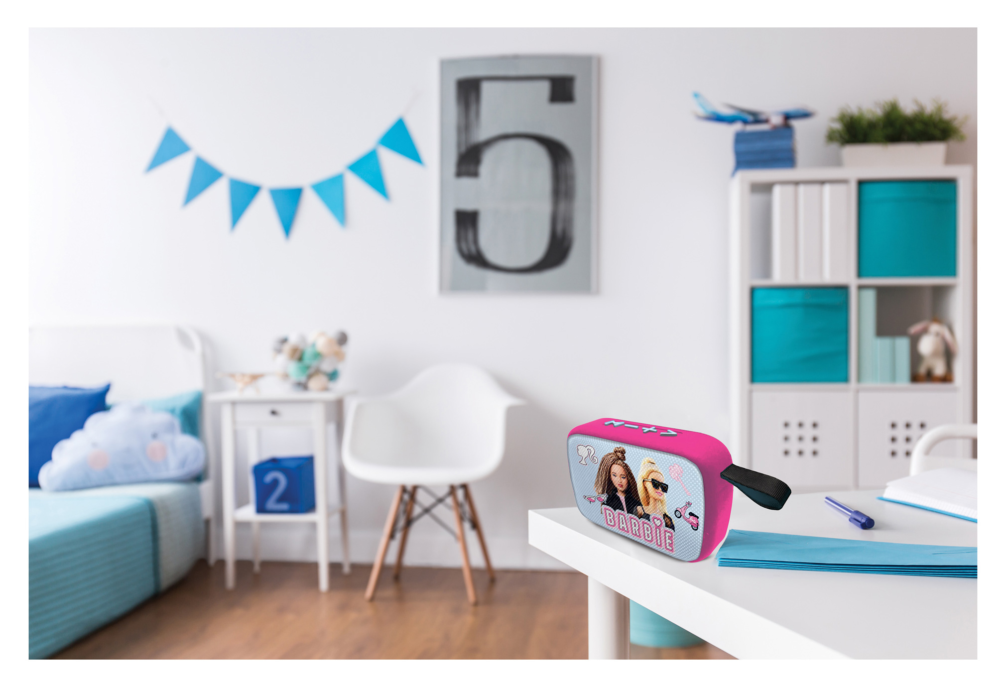 Tento úžasný přenosný reproduktor potěší děti z několika důvodů. Díky své kompaktní velikosti a praktickému poutku si děti mohou hudbu přinést kamkoliv s sebou, ať už je to do jejich pokoje, na zahradu nebo na výlet. Skvěle se vejde do batohu nebo menší tašky. Funkce Bluetooth® jim umožňuje bezdrátově přehrávat jejich oblíbené písničky nebo audioknihy z telefonů či tabletů, což jim dává volnost pohybu. Hudbu lze také přehrávat z dalších externích zdrojů díky USB portu pro USB disk do 32 GB a slotu pro paměťové micro karty typu SD/TF s kapacitou až 64 GB (karty ani USB disk nejsou součástí balení). Reproduktor o velikosti 11,7 x 3,8 x 7,8 cm je elegantně doplněn látkovým povrchem na přední straně, měkkým silikonovým pouzdrem a ovládacími tlačítky umístěnými na horní straně.