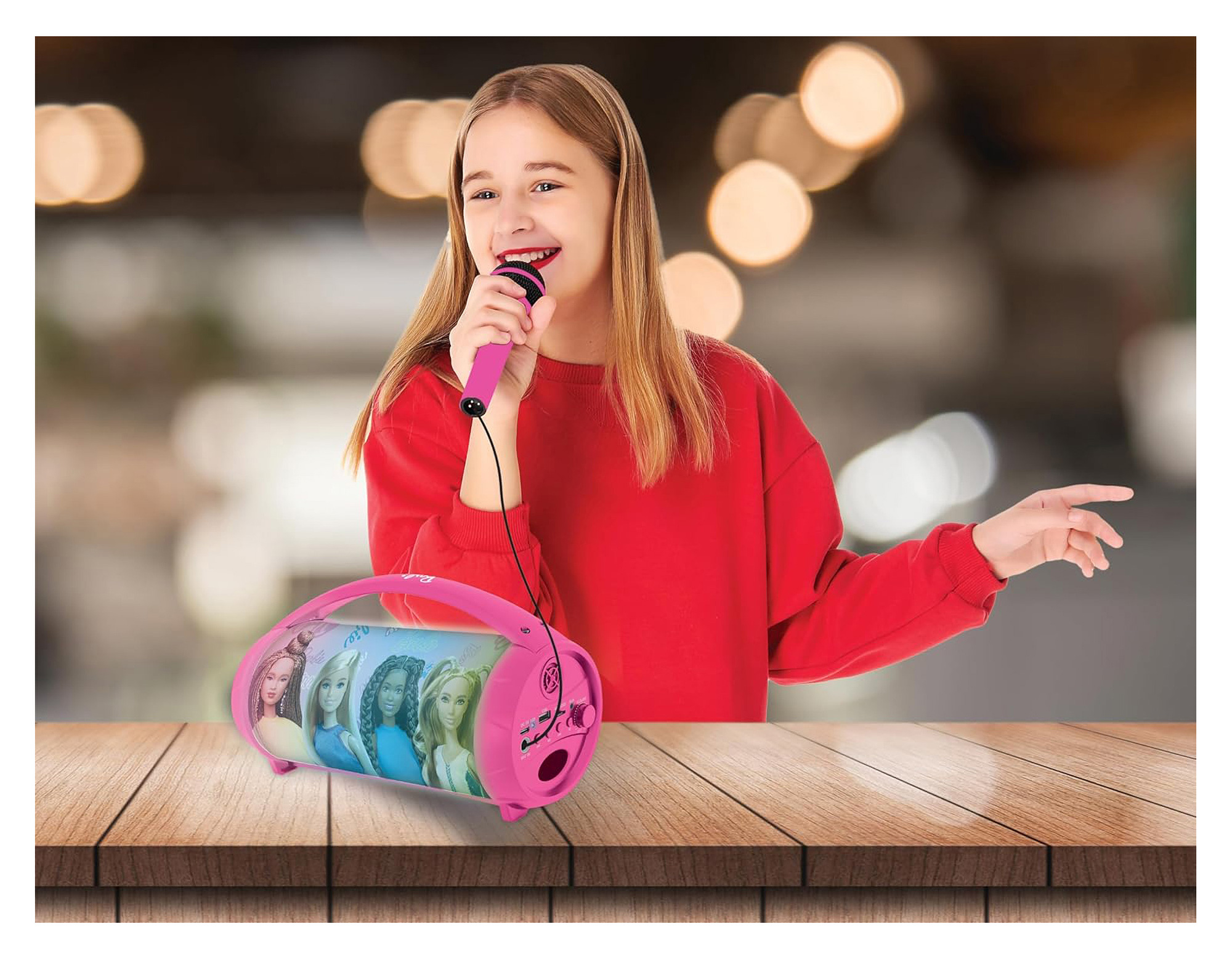 - Svítící reproduktor Boombox Barbie s mikrofonem