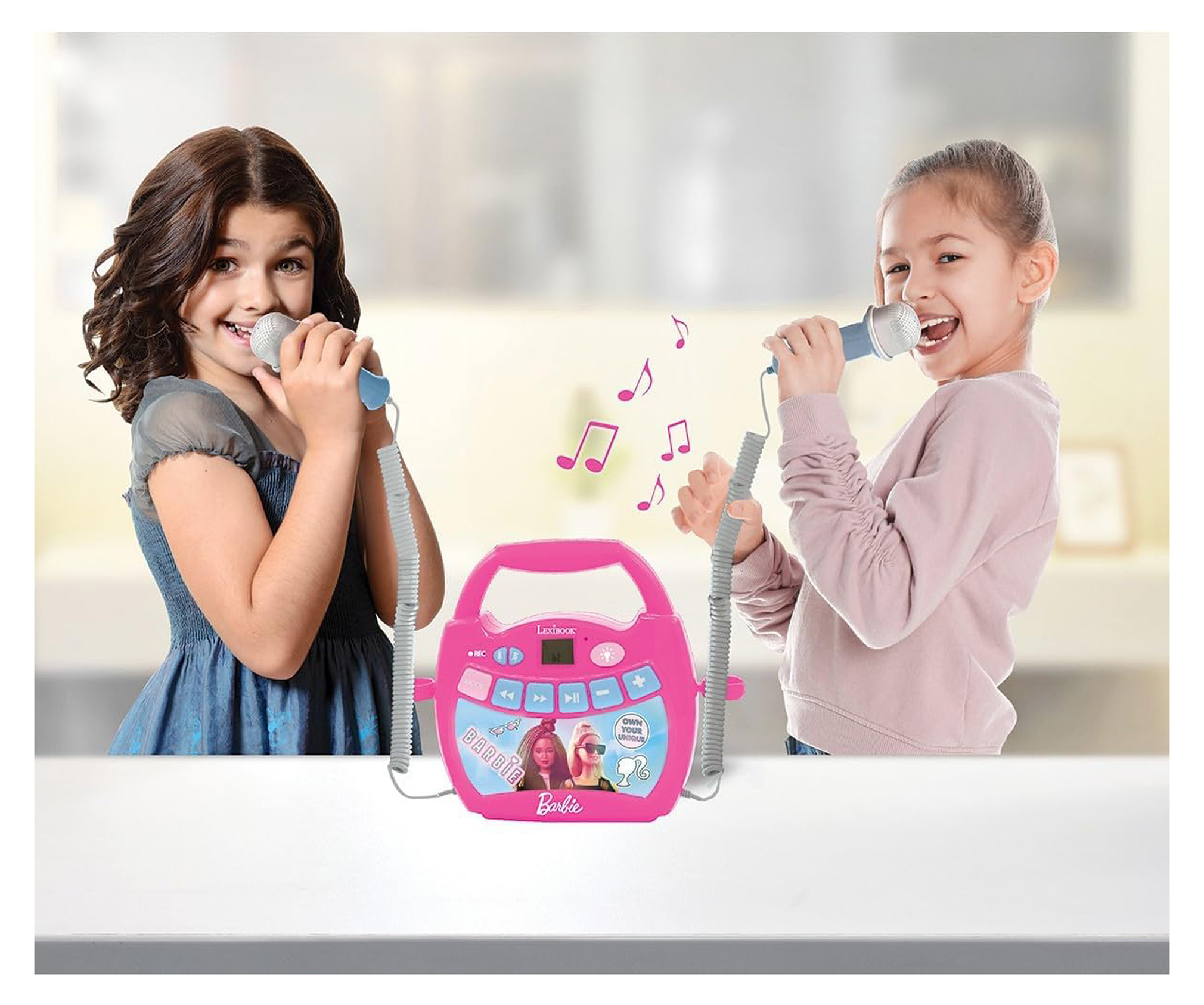 Svítící digitální karaoke přehrávač se 2 mikrofony - Barbie