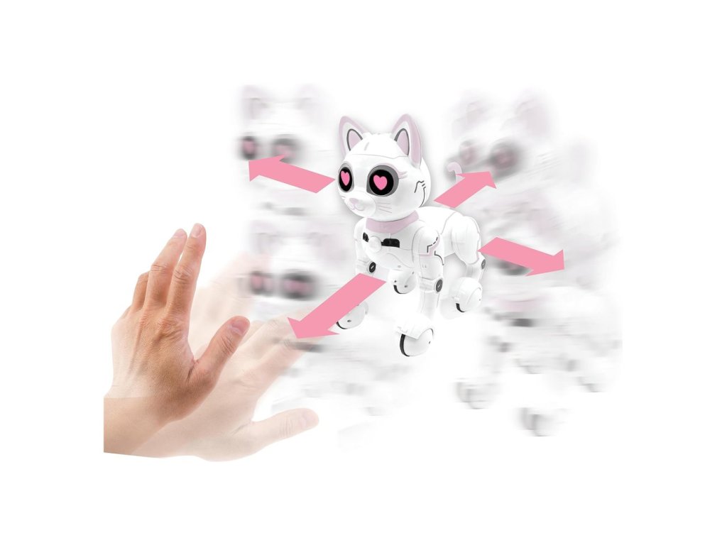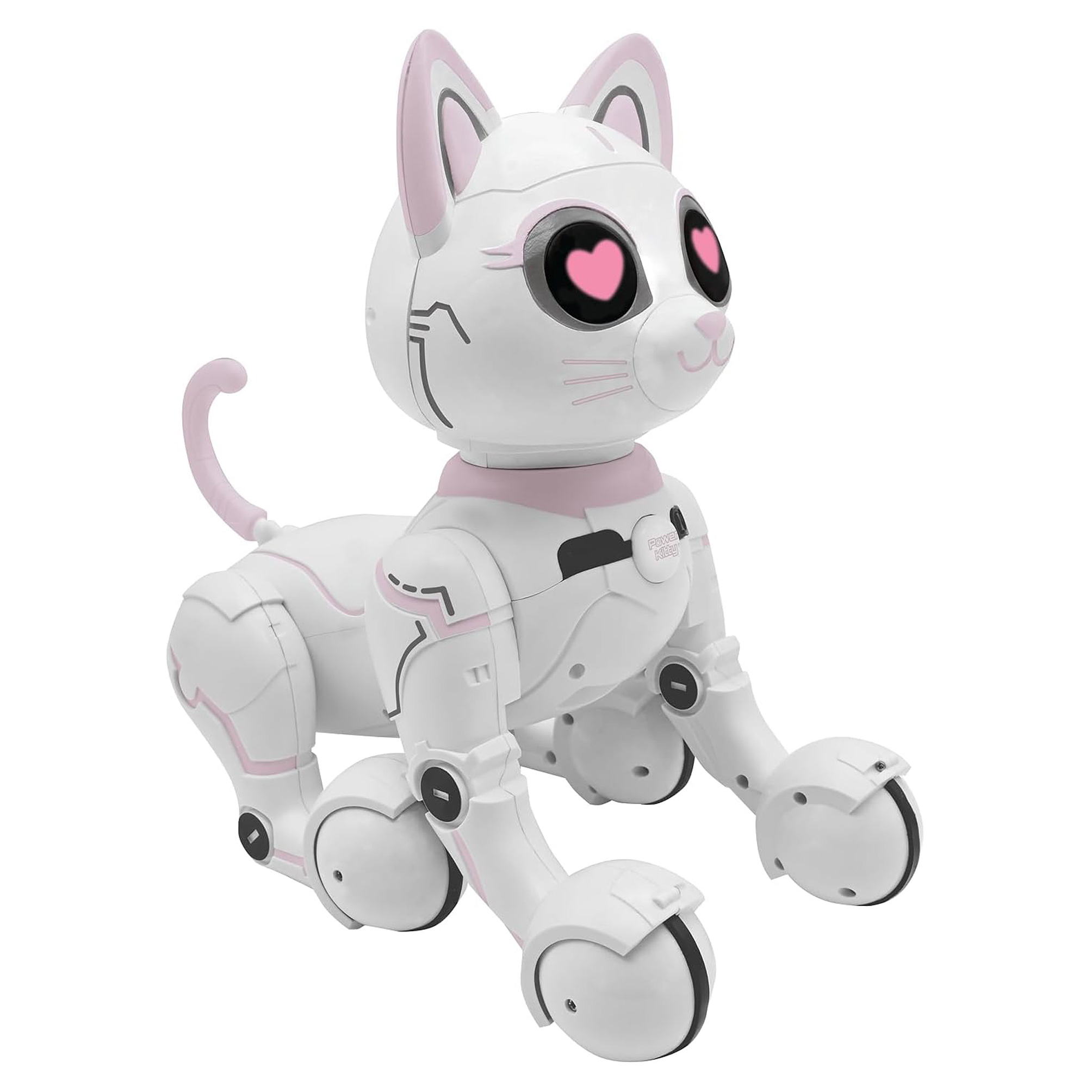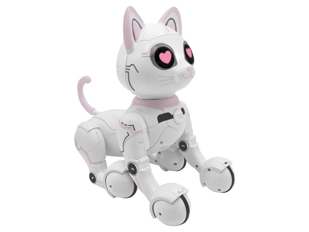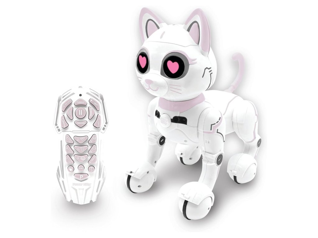 Chytré robotické kotě Power Kitty® na dálkové ovládání je roztomilým společníkem pro děti, který kombinuje vizuální efekty s interaktivní zábavou a vzdělávacími funkcemi. Robotická kočka s integrovanými světelnými efekty v očích přináší hodiny nekonečné zábavy. Power Kitty umí předvádět mnoho triků – dokáže sednout, lehnout, pozdravit, být přítulná, být naštvaná, hýbat ušima, a dokonce cvičí jógu. Učí děti čísla, kdy zamňouká tolikrát, kolikrát je požádáno a na pohlazení po hlavě reaguje tancem. Umí spoustu zábavných kousků, včetně napodobování různých zvuků zvířat! Díky programovatelným tréninkovým funkcím mohou děti své robotické kotě trénovat a naučit jej poslouchat zadané sekvence. Senzory robotovi umožňují následovat děti podle jejich gest a pohybů. Toto chytré robotické kotě Power Kitty se snadným ovládáním si děti zamilují!