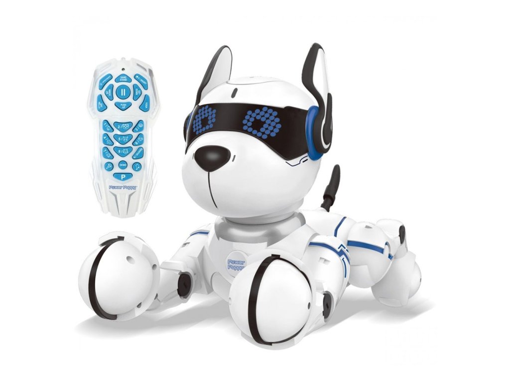 Chytré robotické štěně Power Puppy® na dálkové ovládání je roztomilým společníkem pro děti. Robotický pes s integrovanými světelnými efekty na obojku a v očích umí předvádět mnoho triků – dokáže sednout, lehnout, pozdravit, hlídat pokoj, dělat kliky, být naštvaný a dokonce cvičit jógu. Dokáže štěkat podle číselných tlačítek na ovladači a na pohlazení po hlavě reaguje tancem. Staví se na přední a napodobuje zvuky zvířat. Senzory robotovi umožňují následovat děti podle jejich gest a pohybů. Toto chytré robotické štěně Power Puppy se snadným ovládáním si děti zamilují!