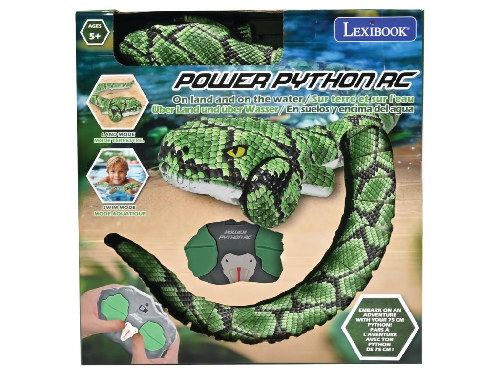 Dálkově ovládaný had nabízí jedinečný zážitek díky svému realistickému designu a flexibilnímu pohybu těla i ocasu. Tento Power Python RC had se dokáže nejen plynule plazit, ale také umí plavat ve vodě! Jeho délka dosahuje až 75 cm a pohybuje se rychlostí až 5 km/h. Snadno ovladatelný dálkovým ovladačem umožňuje pohyb ve třech směrech – dopředu, doleva a doprava. Stabilní a nerušené spojení zajišťuje frekvence 2,4 GHz. Součástí je také demo režim, ve kterém se had pohybuje automaticky. Skvělá hračka pro děti, které jsou fascinovány plazy a užívají si realistické dobrodružství.