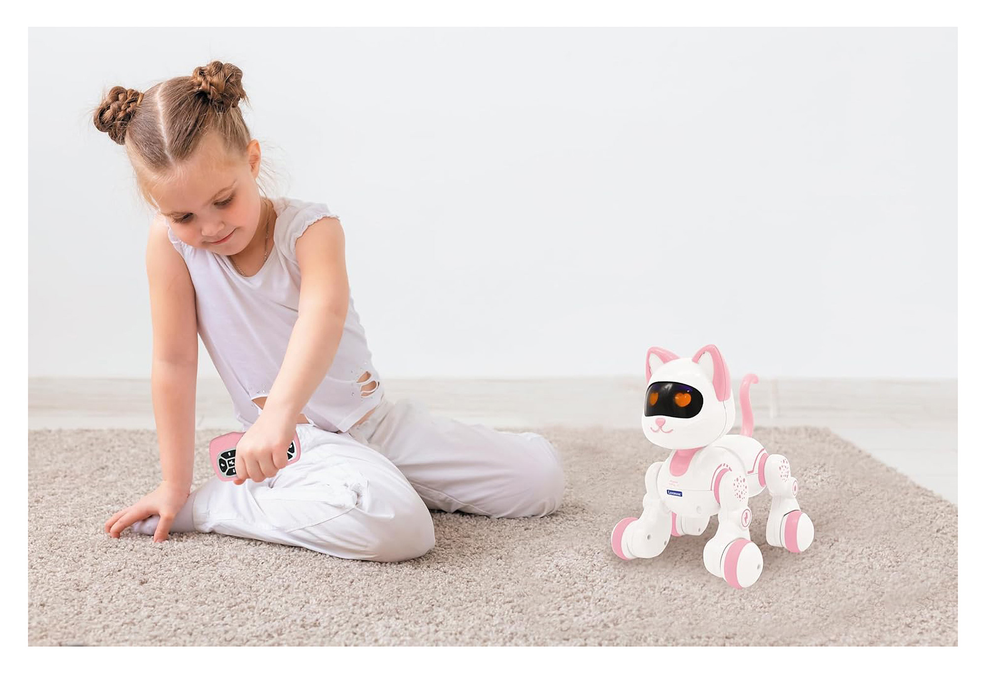 Kočičí robot pro děti se světelnými efekty v očích ve tvaru srdce se díky mechanismu pohybuje jako skutečná kočka – dokáže kličkovat, klouzat se a dokonce mňoukat. Umí chodit do všech směrů a je doplněn o zábavné zvukové efekty. Děti mohou kočce prostřednictvím ovladače zadat instrukce na taneční pohyby, které pak následuje. Nového domácího mazlíčka si děti zamilují!