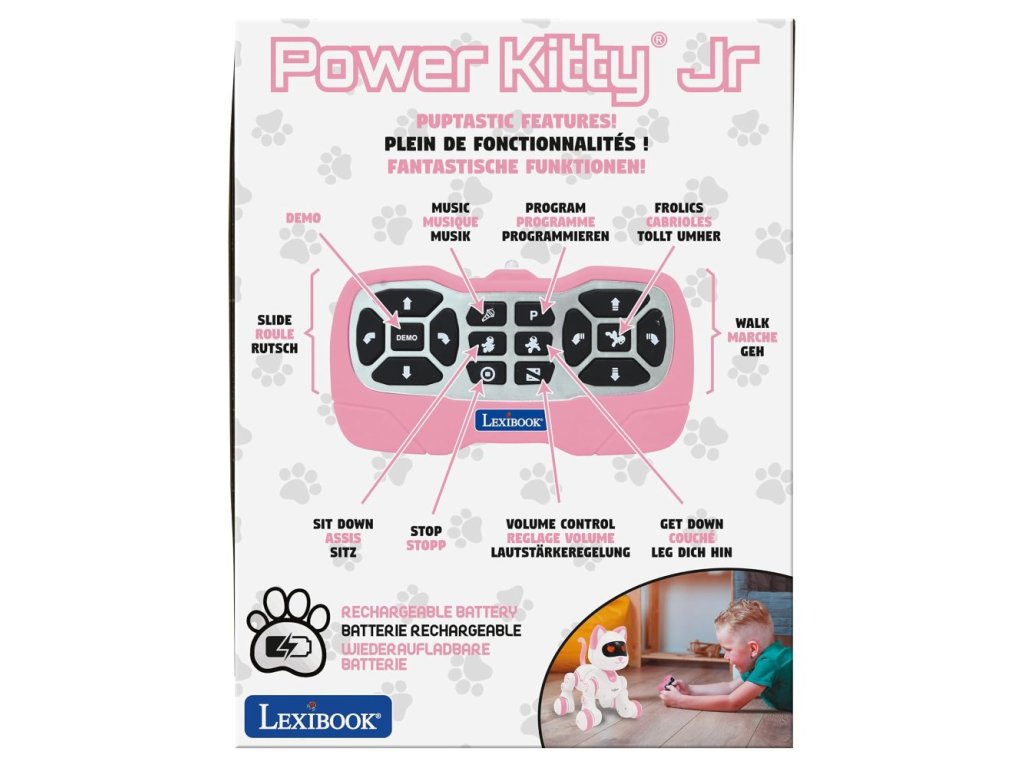 Power Kitty má vestavěnou dobíjecí baterii, kterou nabijete pomocí přiloženého USB nabíjecího kabelu. Do dálkového ovládání budete potřebovat dvě 1,5 V baterie typu AAA/LR03.