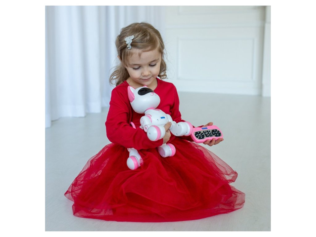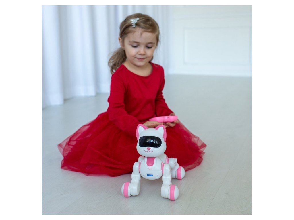 Kočičí robot pro děti se světelnými efekty v očích ve tvaru srdce se díky mechanismu pohybuje jako skutečná kočka – dokáže kličkovat, klouzat se a dokonce mňoukat. Umí chodit do všech směrů a je doplněn o zábavné zvukové efekty. Děti mohou kočce prostřednictvím ovladače zadat instrukce na taneční pohyby, které pak následuje. Nového domácího mazlíčka si děti zamilují!