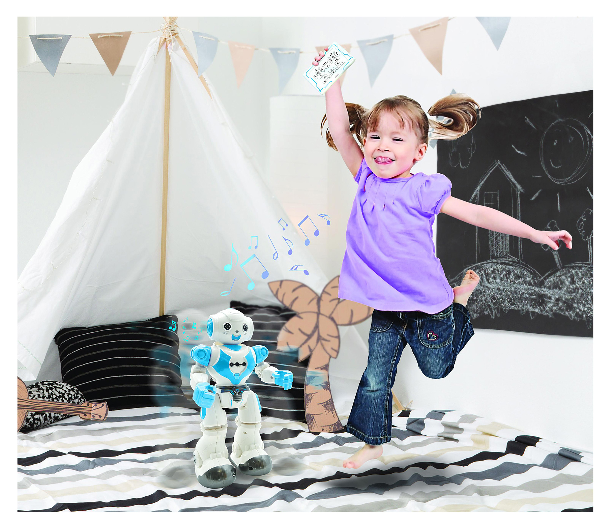 POWERMAN® Neo je interaktivní tančící robot, který miluje hudbu, hraje chytlavé melodie a zároveň děti hravě naučí něco nového! Lze ho snadno ovládat dálkovým ovladačem nebo pomocí gest a díky dvěma rychlostem pohybu ve všech směrech je připraven na každé dobrodružství. Nabízí vzdělávací kvízy, vypráví poutavé příběhy a pomáhá rozšiřovat znalosti hravou formou (v angličtině). Robot je programovatelný a děti s ním mohou vytvářet vlastní pohyby a tance a užívat si jeho světelné i zvukové efekty.