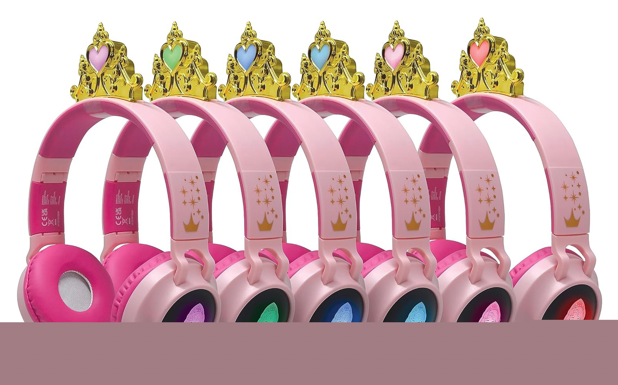 Představujeme praktická sluchátka 2 v 1 vybavená bezdrátovou technologií i možností připojení pomocí kabelu pro nerušený poslech hudby, sledování videí nebo hraní videoher. Děti ocení roztomilý design s korunkou a náušníky, které barevně svítí. Technologie Bluetooth® 5.0 umožňuje bezdrátové připojení do 10 m ke všem kompatibilním zařízením, jako jsou chytré telefony, tablety, audio a video přehrávače. Další možnost pro přehrávání hudby nabízí SD slot pro paměťovou MicroSD kartu (karta není součástí balení). Sluchátka lze snadno přepnout do režimu kabelového připojení pomocí kabelu s 3,5mm jack konektorem (součástí balení). Mají vestavěné ovládací prvky, jako jsou přehrávání/pauza, tlačítka hlasitosti a možnost přepínat skladby. Sluchátka navíc mají integrovaný mikrofon pro přijímání hovorů. Jsou vybavena nastavitelným hlavovým mostem, takže dokonale padnou na každou hlavu a měkkými náušníky pro maximální pohodlí. Tato sluchátka jsou robustní, skládací a vyrobená z lehkého materiálu.