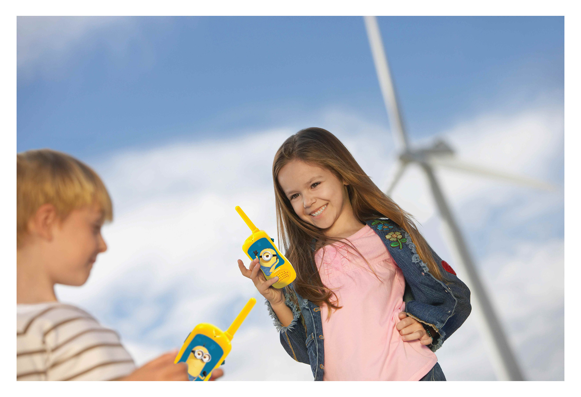 - Dvě vysílačky s dosahem přenosu až 120 metrů venku (v závislosti na terénu a povětrnostních podmínkách, doporučuje se používat na rovném otevřeném prostranství)