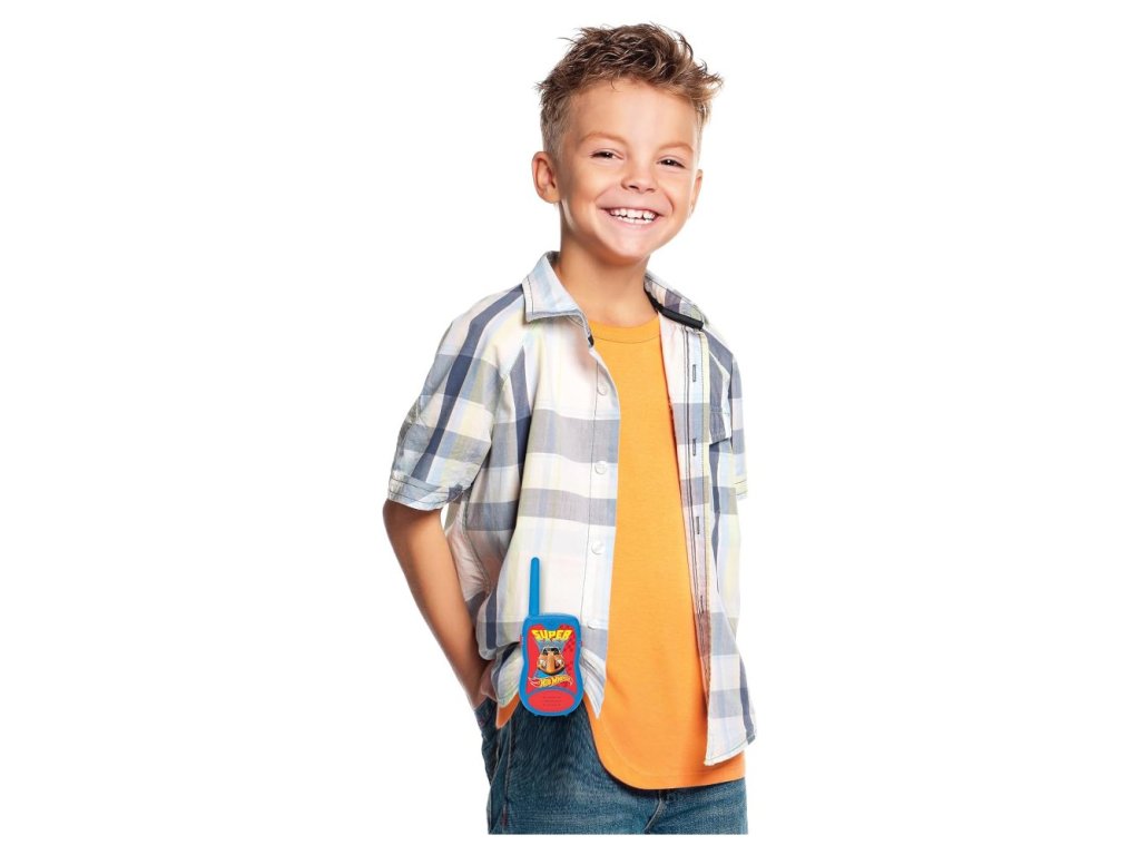 - Dvě vysílačky pro děti Hot Wheels s dosahem přenosu až 200 metrů venku (může se lišit v závislosti na terénu a povětrnostních podmínkách)