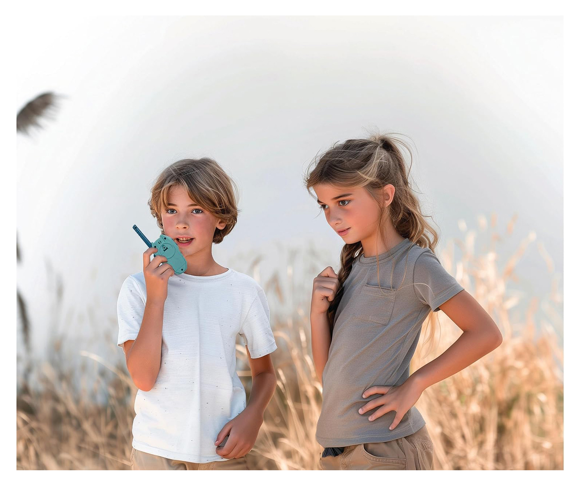 Naše dětské vysílačky nabízejí snadný způsob, jak zůstat ve spojení na krátké vzdálenosti při venkovních hrách. Tyto vysílačky umožňují komunikaci až do 250 metrů venku (v závislosti na terénu a povětrnostních podmínkách). Díky uživatelsky přívětivým tlačítkům, ergonomickému designu stvořenému pro malé ručičky a digitálnímu zvuku jsou skvělé pro malé děti například při hře na špiony nebo sdílení tajných informací! Vysílačky mají navíc světelný indikátor.